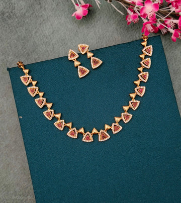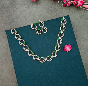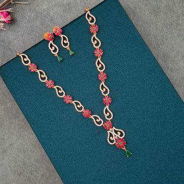 Ruby Green Half-Moon AD Pendant Necklace Set