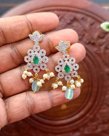 SKU : SD0126 Size reference : medium AD Green stone floral danglers Size : Medium...