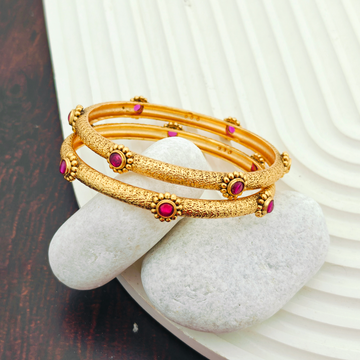 SKU : BA0088 Kerala trend Golden Designer 4 Set Bangles, featuring red Kemp stones and...