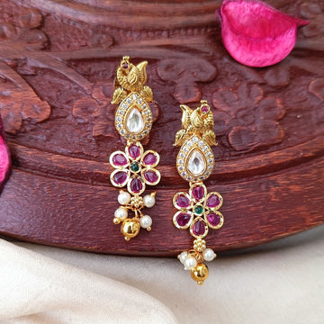 SKU : JK0076 Size reference : Medium Expertly crafted, these 3D Peacock Kemp Stone Jhumkas...