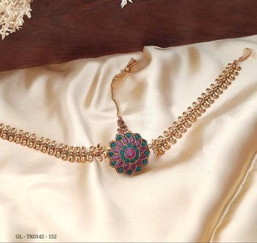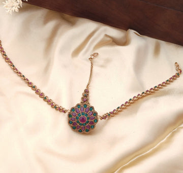 SKU : HD0010 The Elegant 3 line tikka in Antique - leaf pattern boasts a...