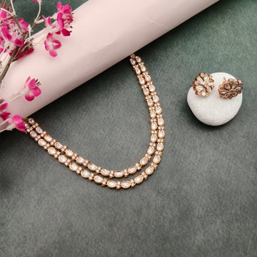 SKU : SH0013 Size Reference : Rests at the collarbone American Diamond Necklace set -...