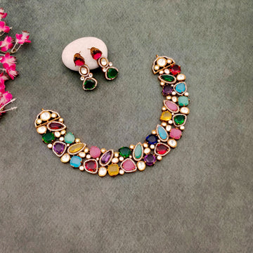 SKU : SH0235 Size Reference : Rests below the collarbone This Floral Three layer stone...