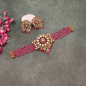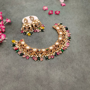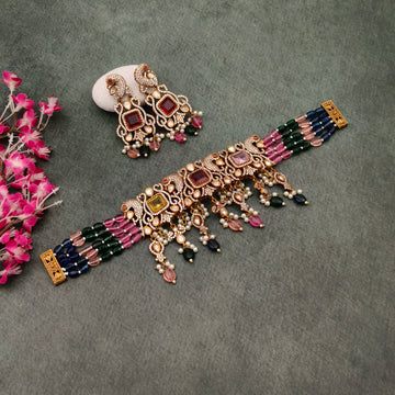 SKU : SH0135 Size Reference : Choker Fit The Mossanaite stone Pink floral short Necklace...