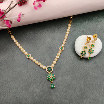 SKU : SH0024 Size Reference : Rests at the collarbone This American Diamond necklace set...