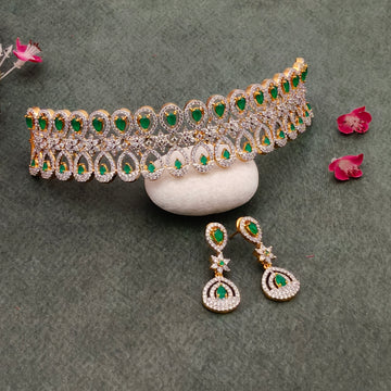 SKU : SH0253 Size Reference : Choker Fit This Bridal Emerald Choker Necklace Set features...