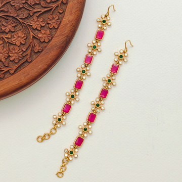 Ear Chains - AD Ruby Emerald pearl drops
