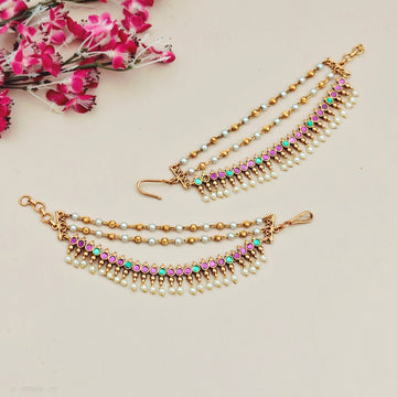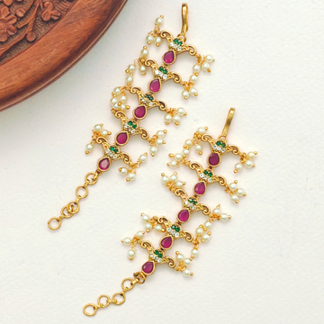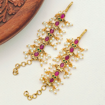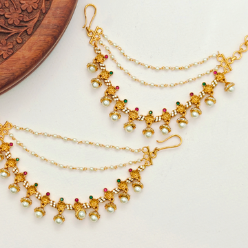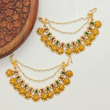 SKU : MT0010 These sophisticated ear chains, featuring a Gold plated Lakshmi pearl drops, are...