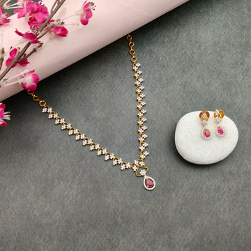 American Diamond Necklace set - Ruby stone