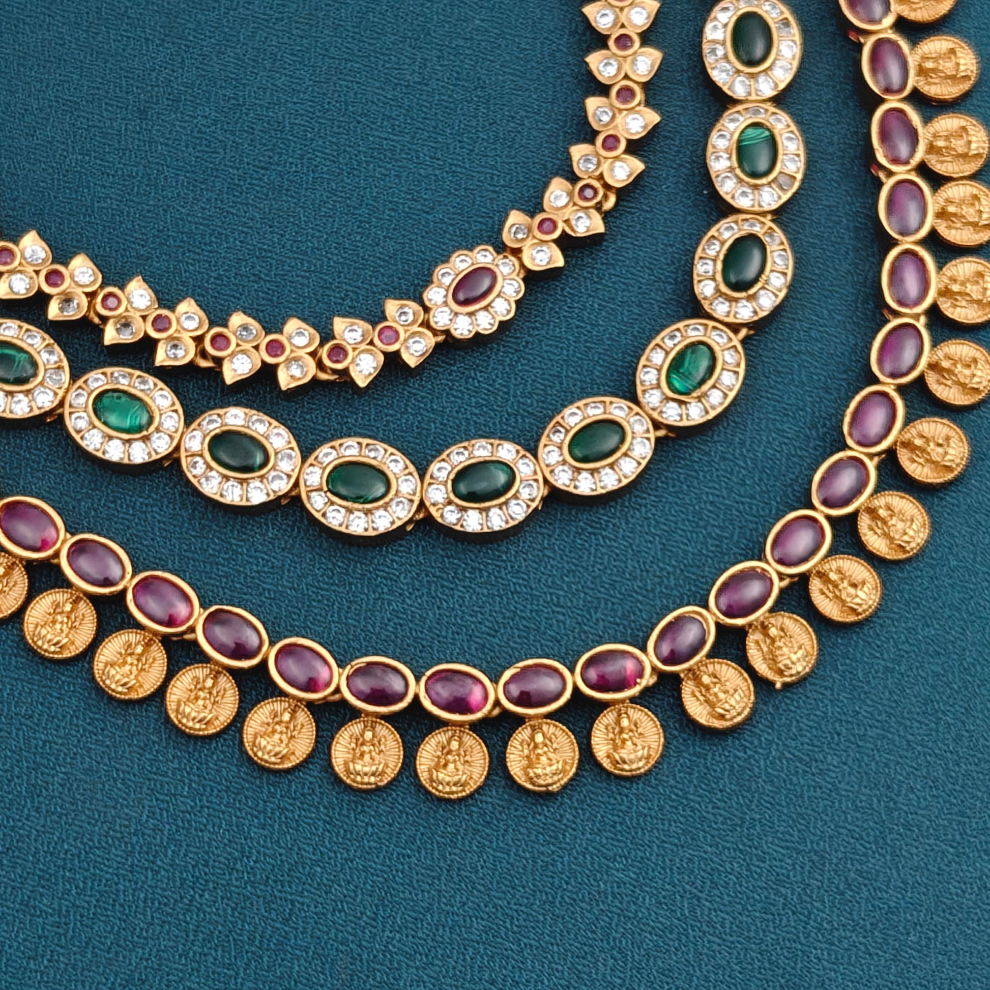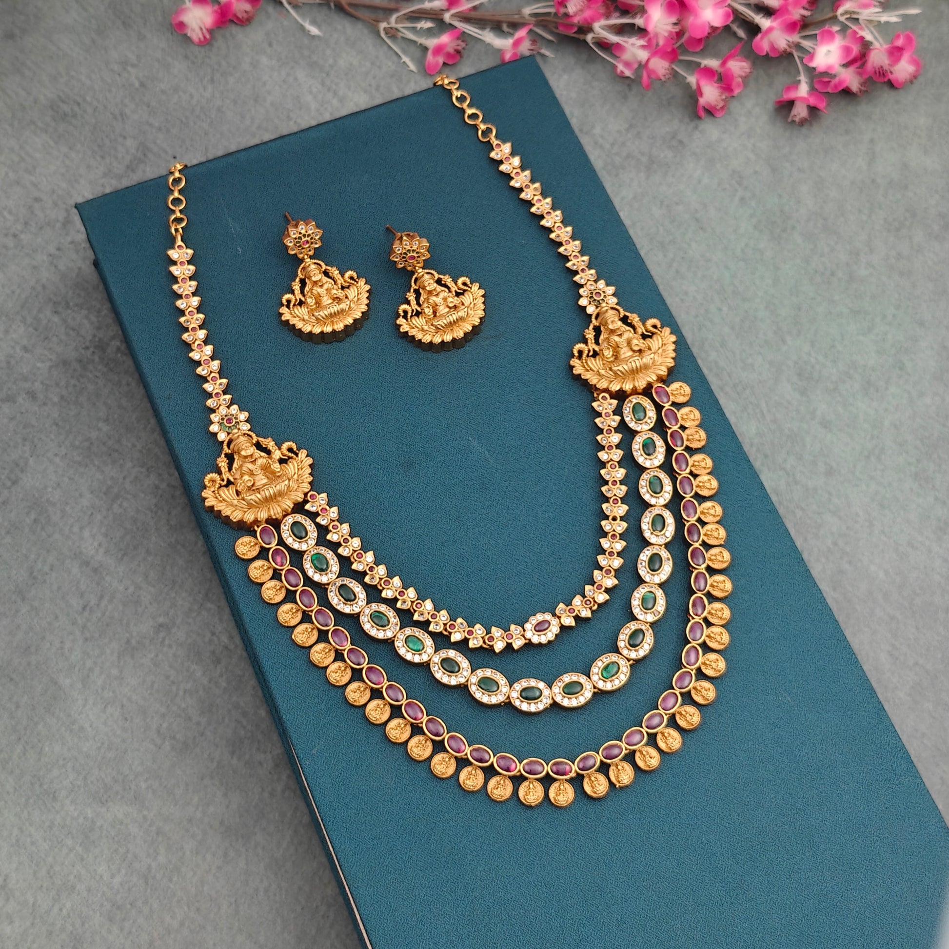 3 layer Lakshmi Coin Temple Haaram
