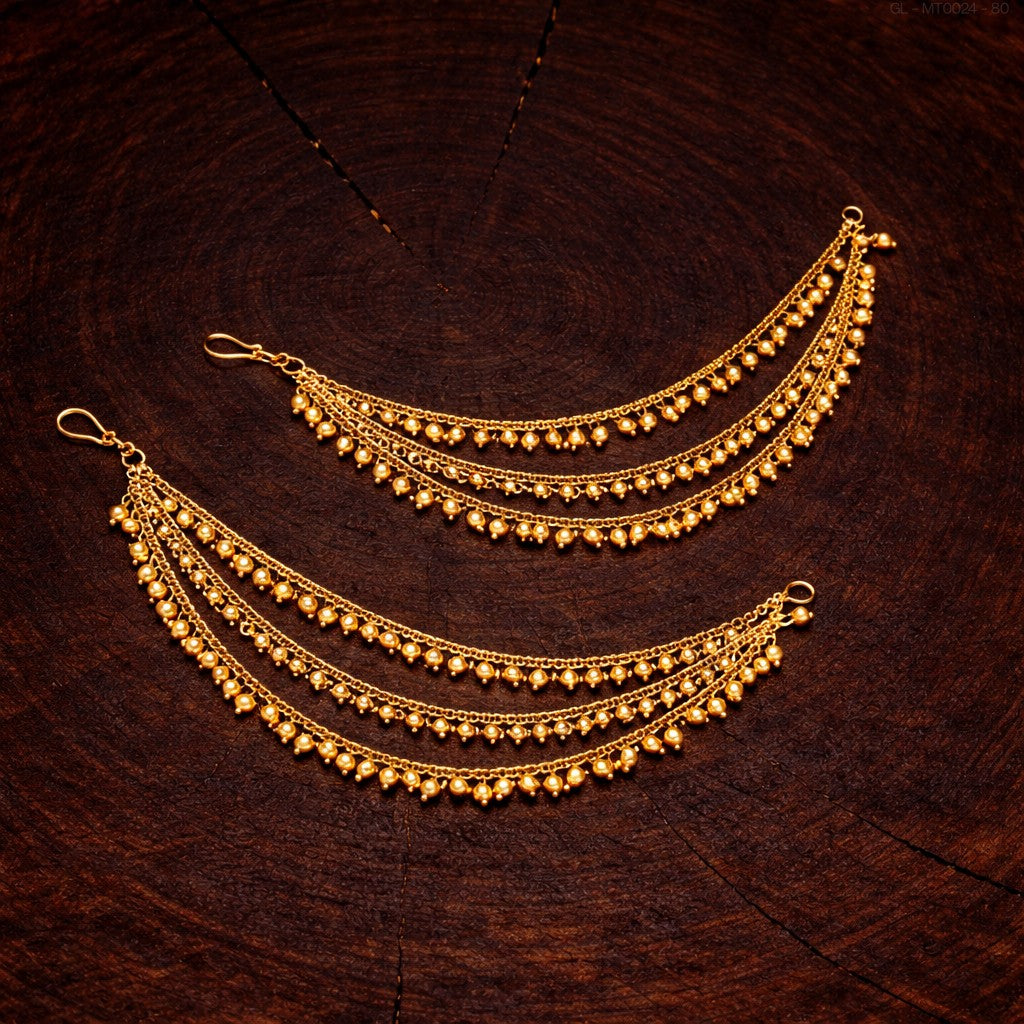 - These sophisticated ear chains, featuring golden drops, are crafted to enhance and complement the elegance of any earrings.