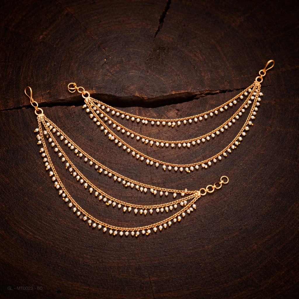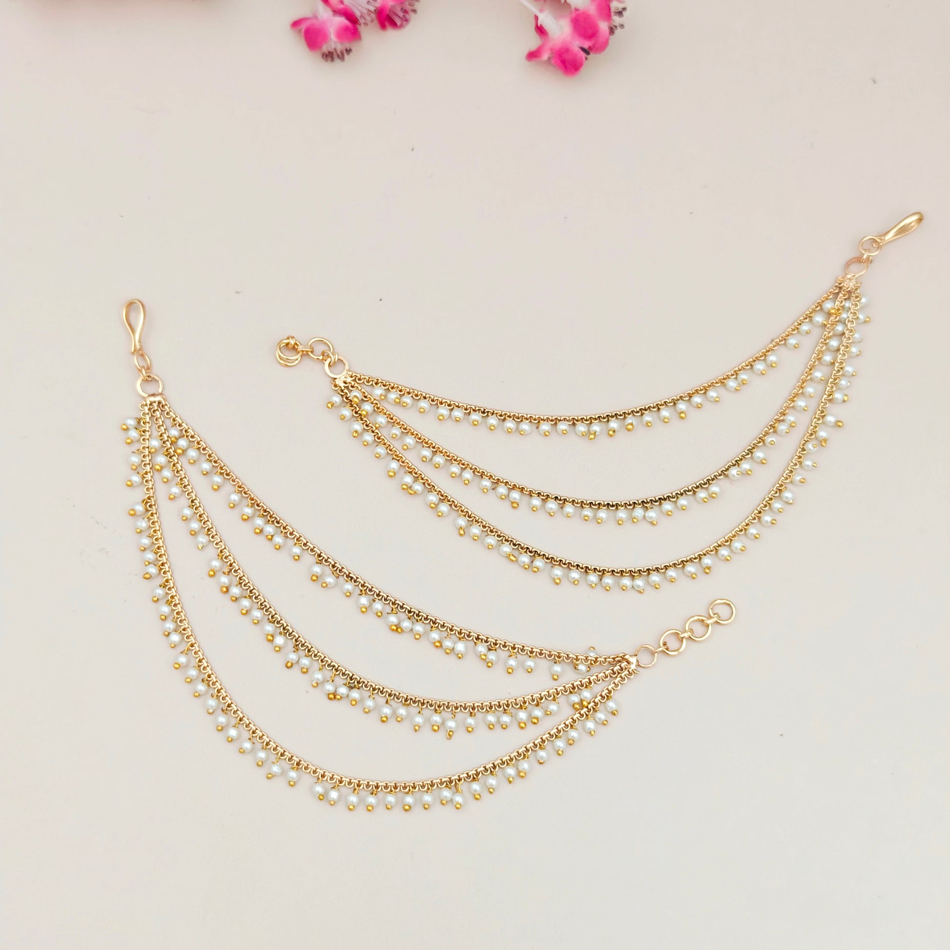 - These sophisticated ear chains, featuring pearl drops, are crafted to enhance and complement the elegance of any earrings.