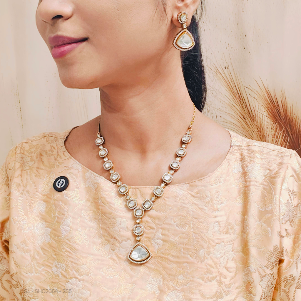 This elegant necklace is adorned with a Mossanaite doublet stone, making it a perfect addition to any party outfit. It's a stunning semi precious gem that adds a touch of sophistication to your look.
