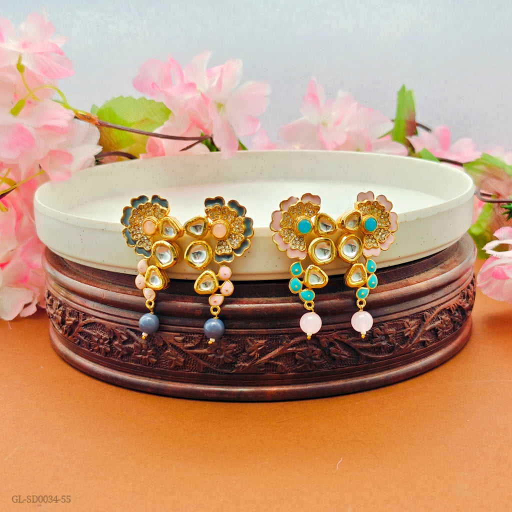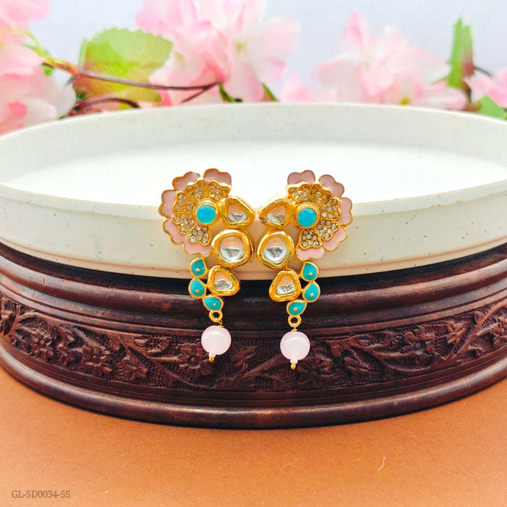 - Elegant Meenakari Kundan Earrings in a Pastel Color Combination