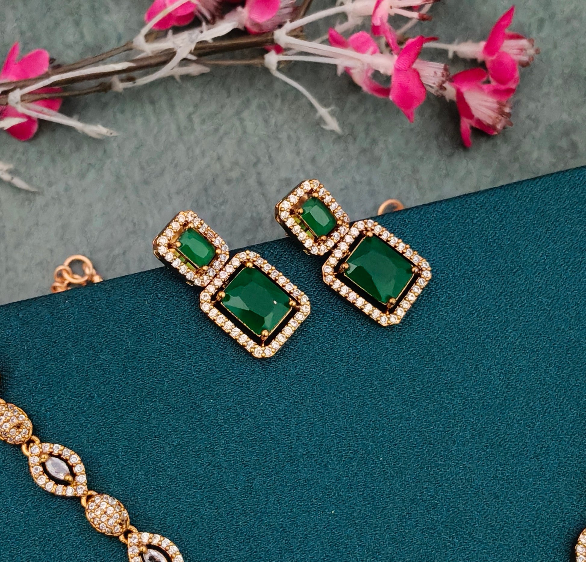 American Diamond Emerald square Set