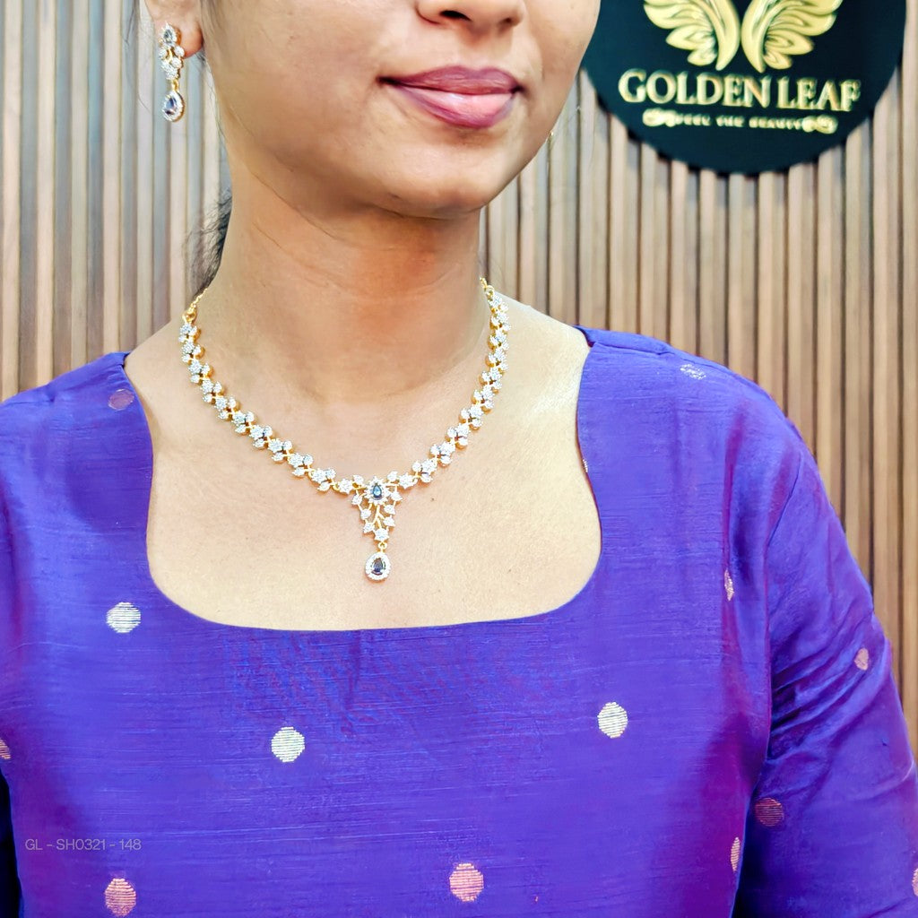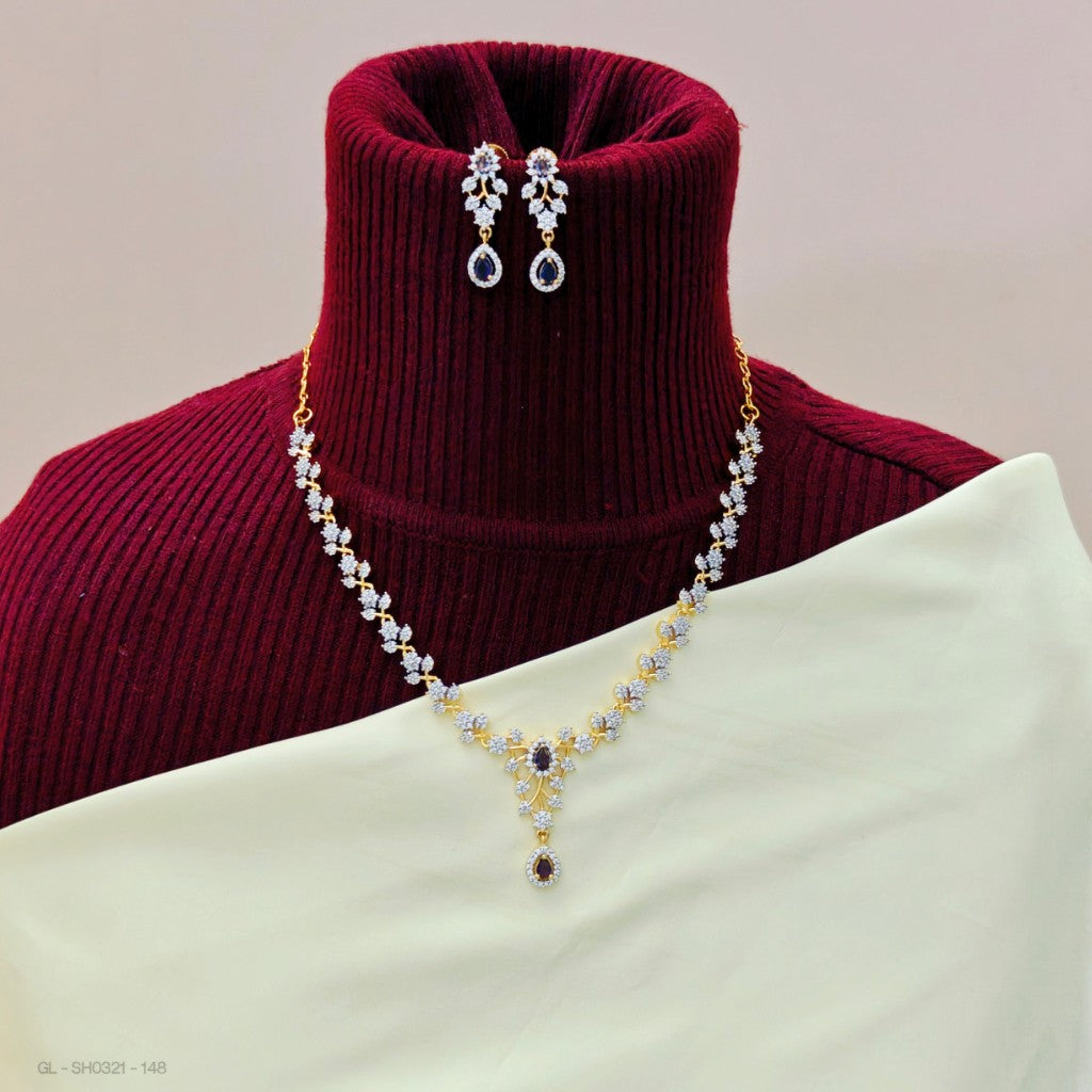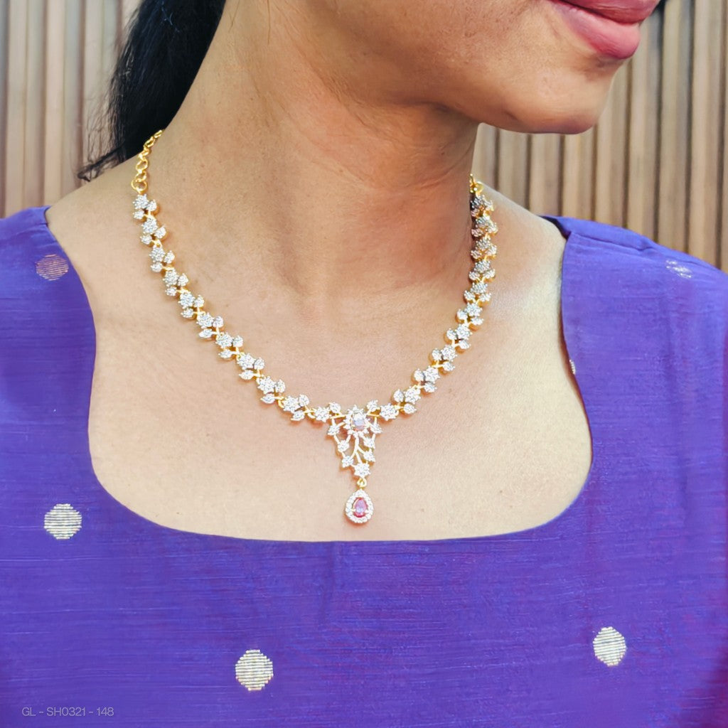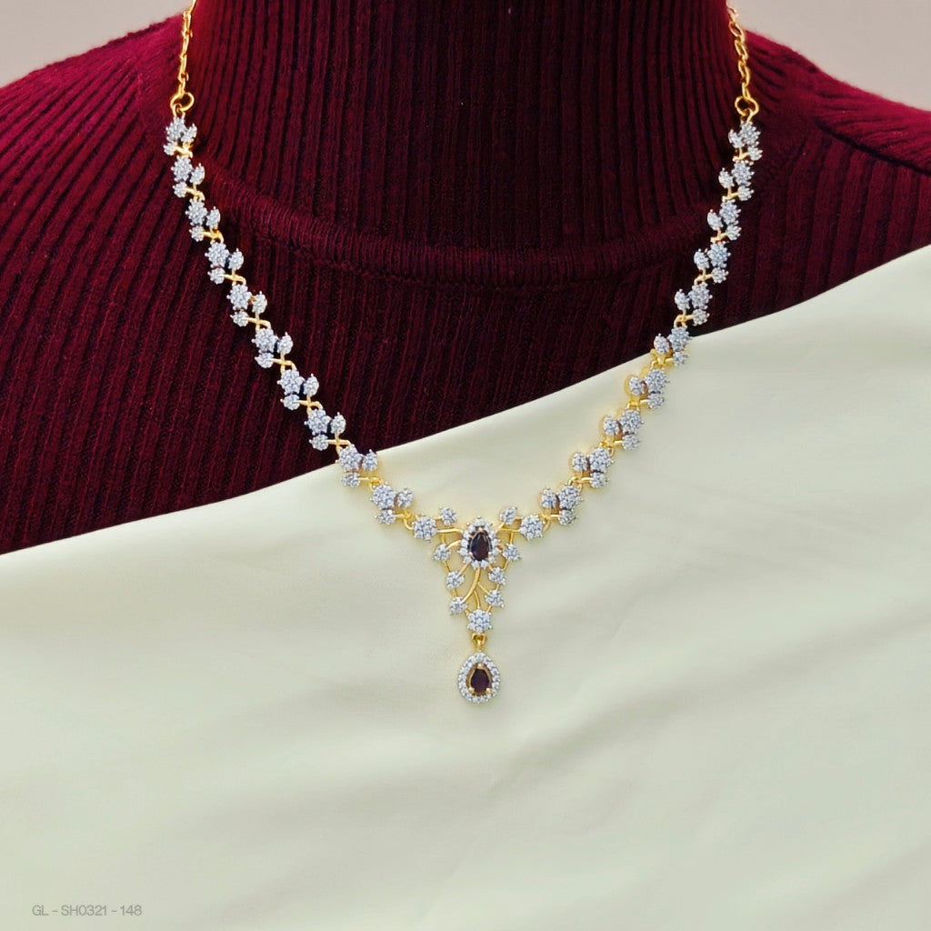 American Diamond Necklace set - white stone in a high-quality with Ruby centered or purple stone centered