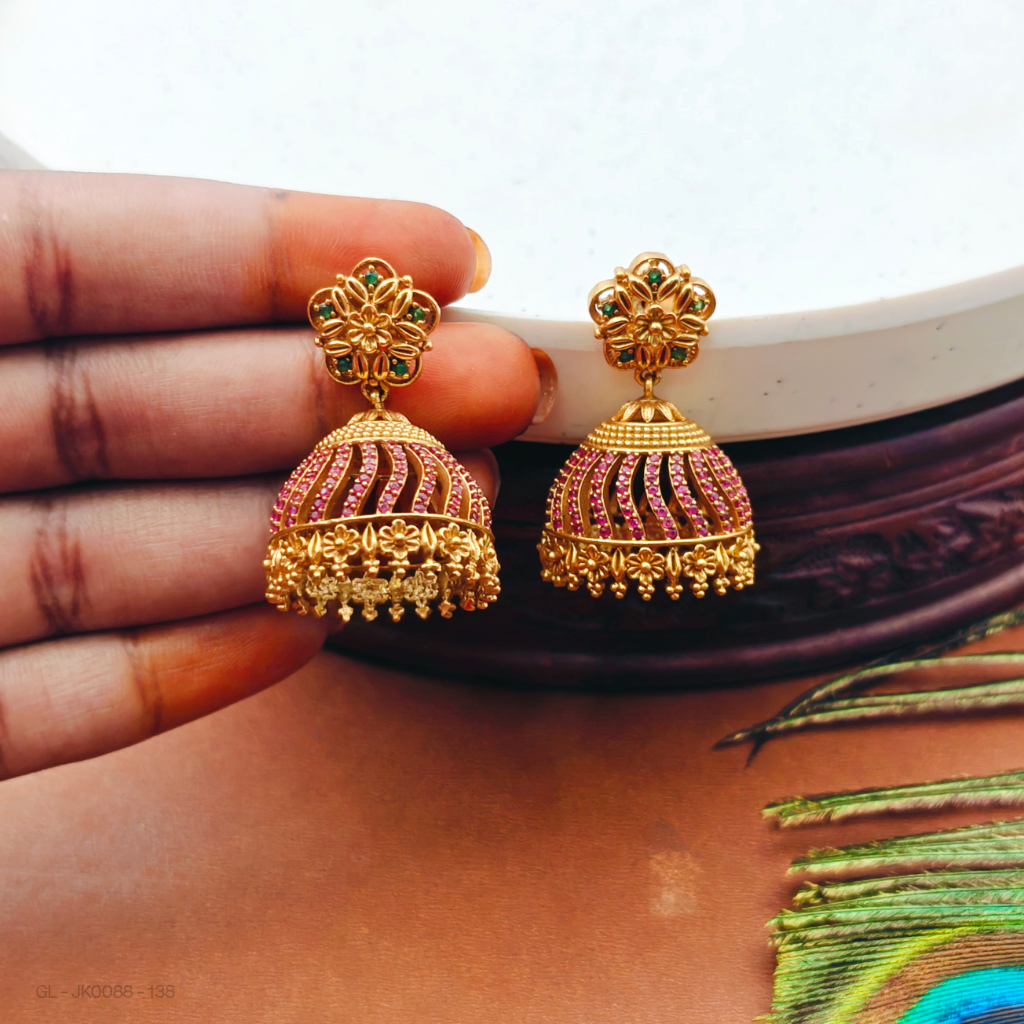Ruby Emerald gold finish Jhumka