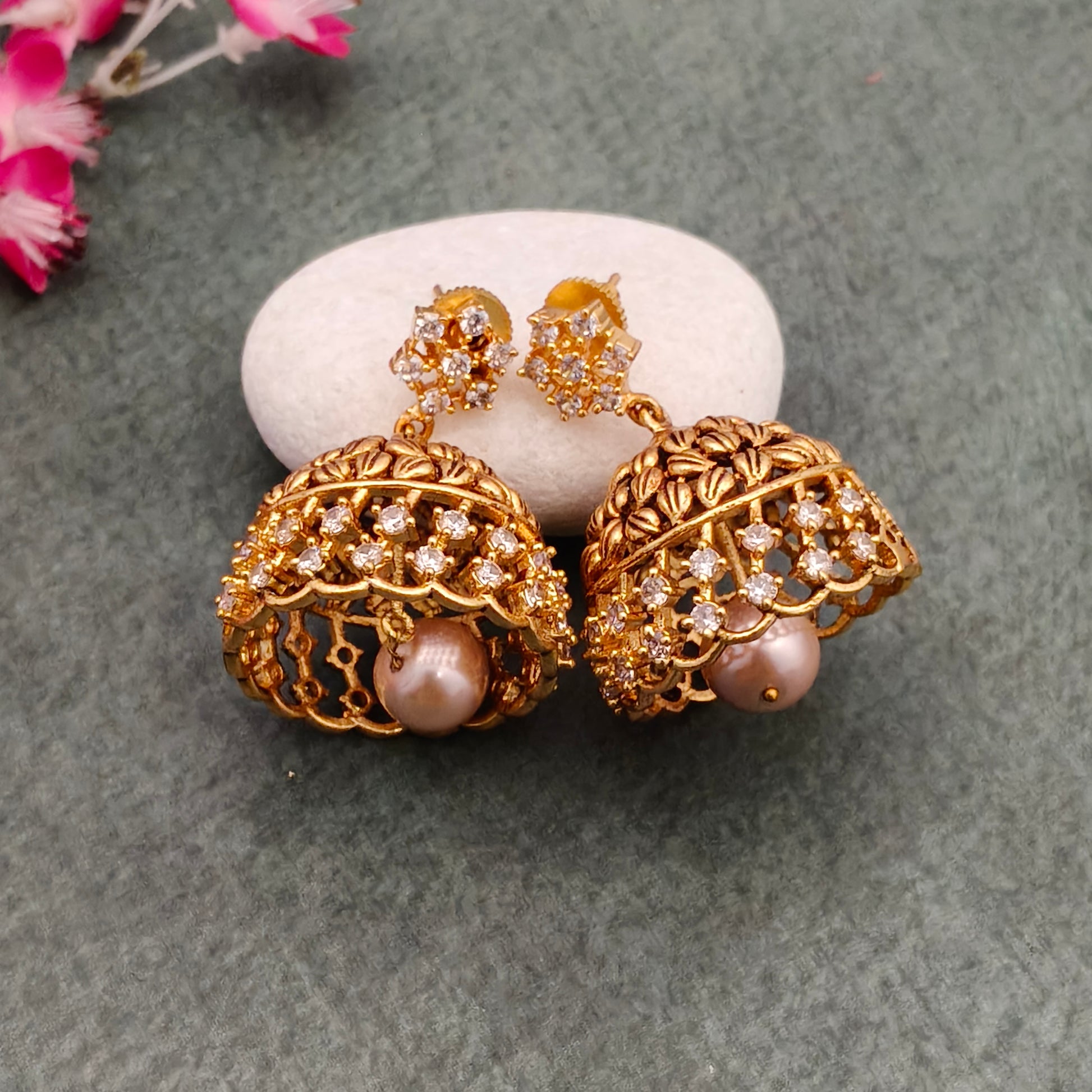 - Antique Matte Finish and AD Stones align this Victorian Elegant Choker Necklace set, adorned with Jhumkas, giving it a sophisticated touch.