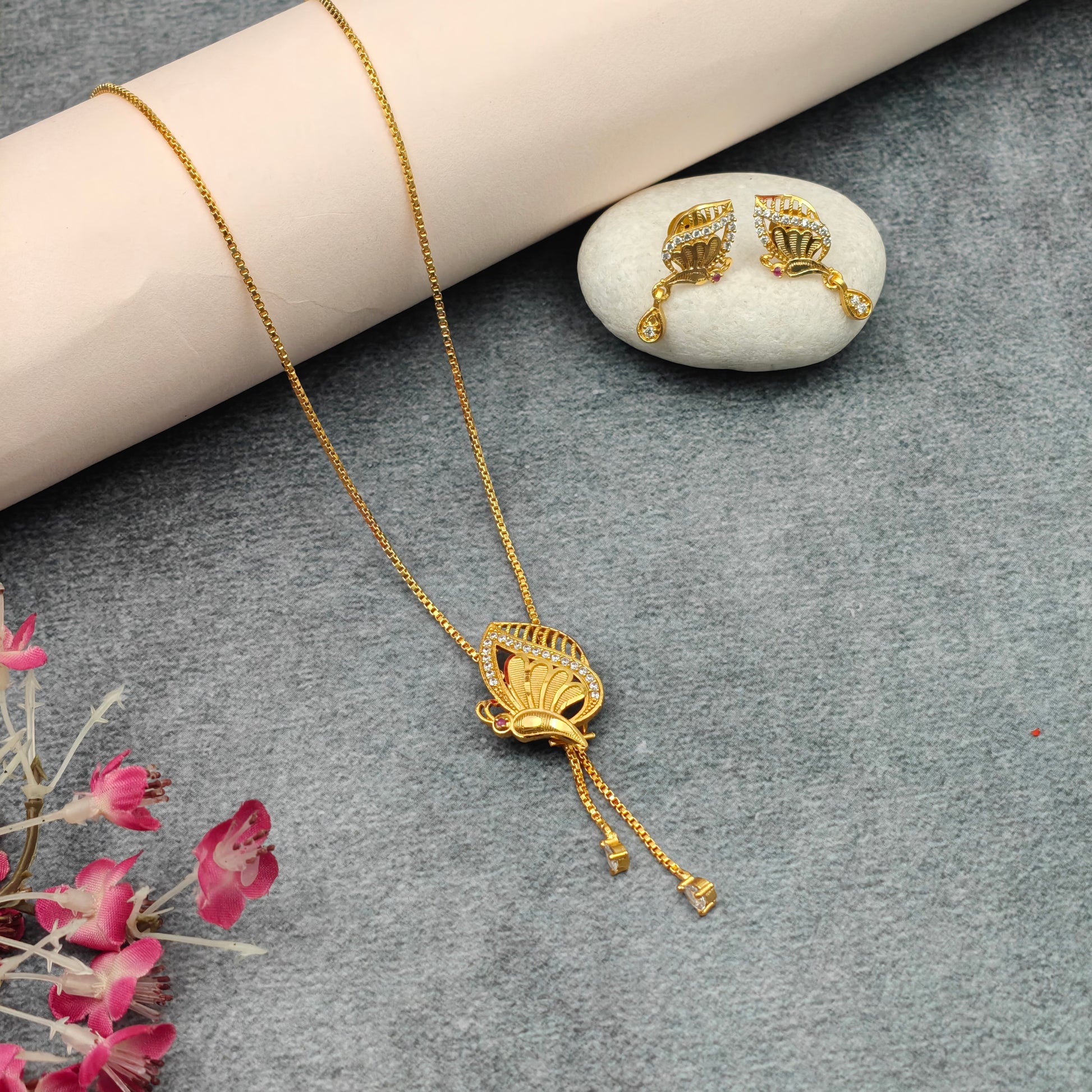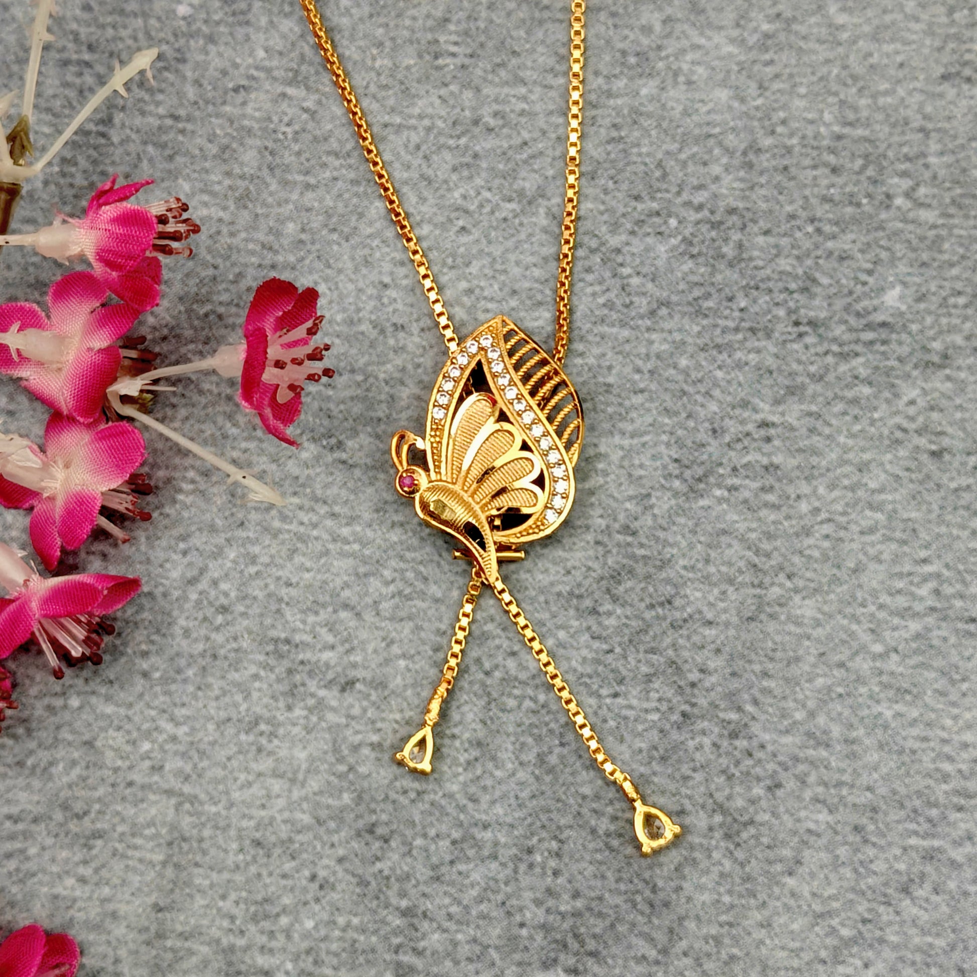 Butterfly Gold-Tone Tie-Style Pendant Daily wear Necklace Set