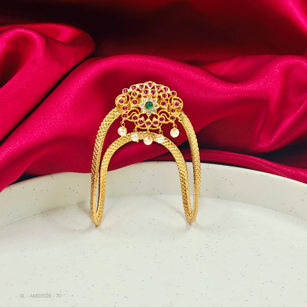 - Gold-toned base With a curved arm band giving it a royal and elegant appearance.