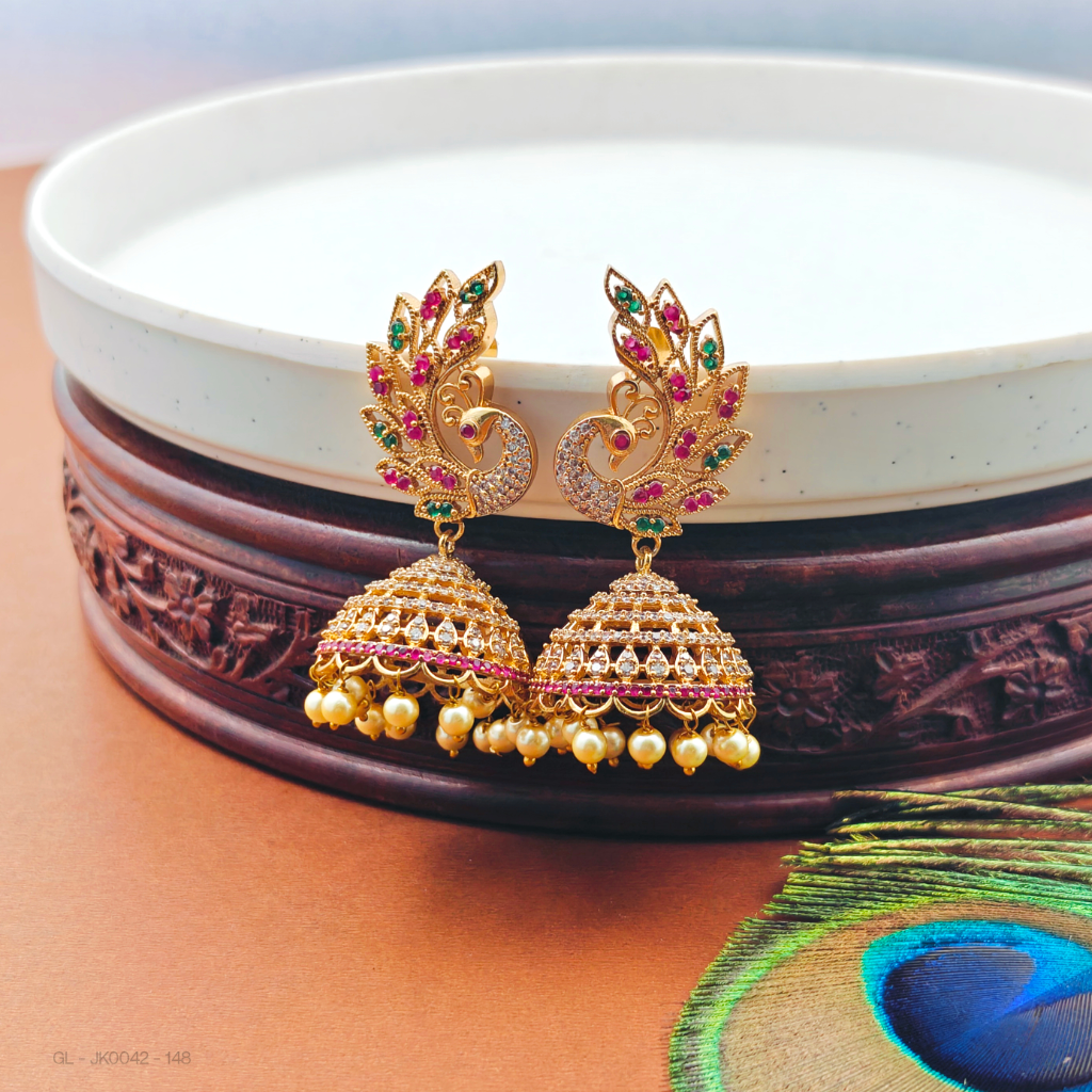 Lightweight Cz Peacock Gold Finish Jhumkas