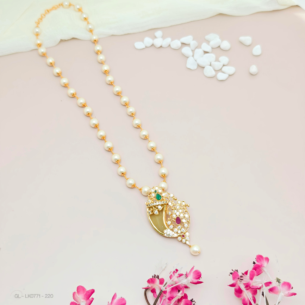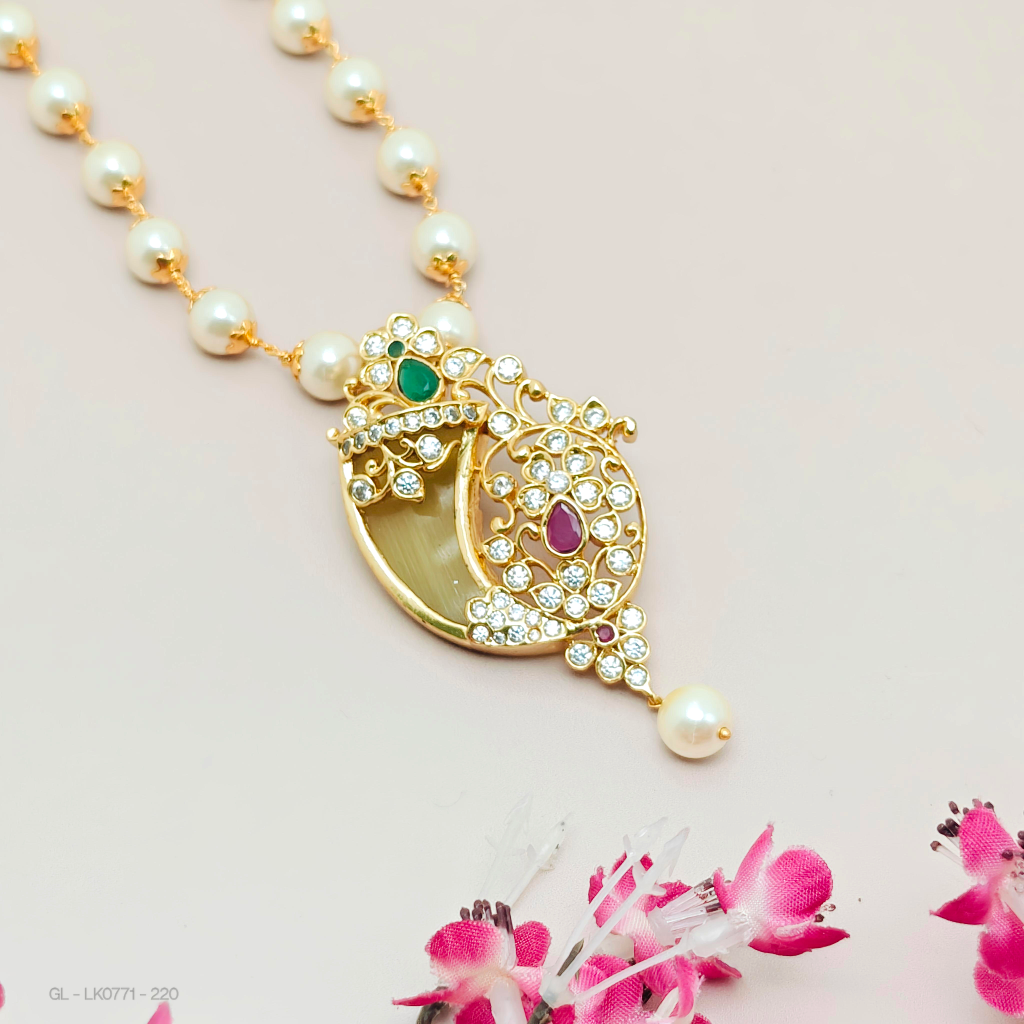 - Experience elegance and tradition with the Tiger Nail Pearl Mala Set featuring a 1 gram Gold finish Tiger Nail Locket, a mid length Pearl Mala, and Radha Krishna Earrings, this set exudes both beauty and cultural significance.