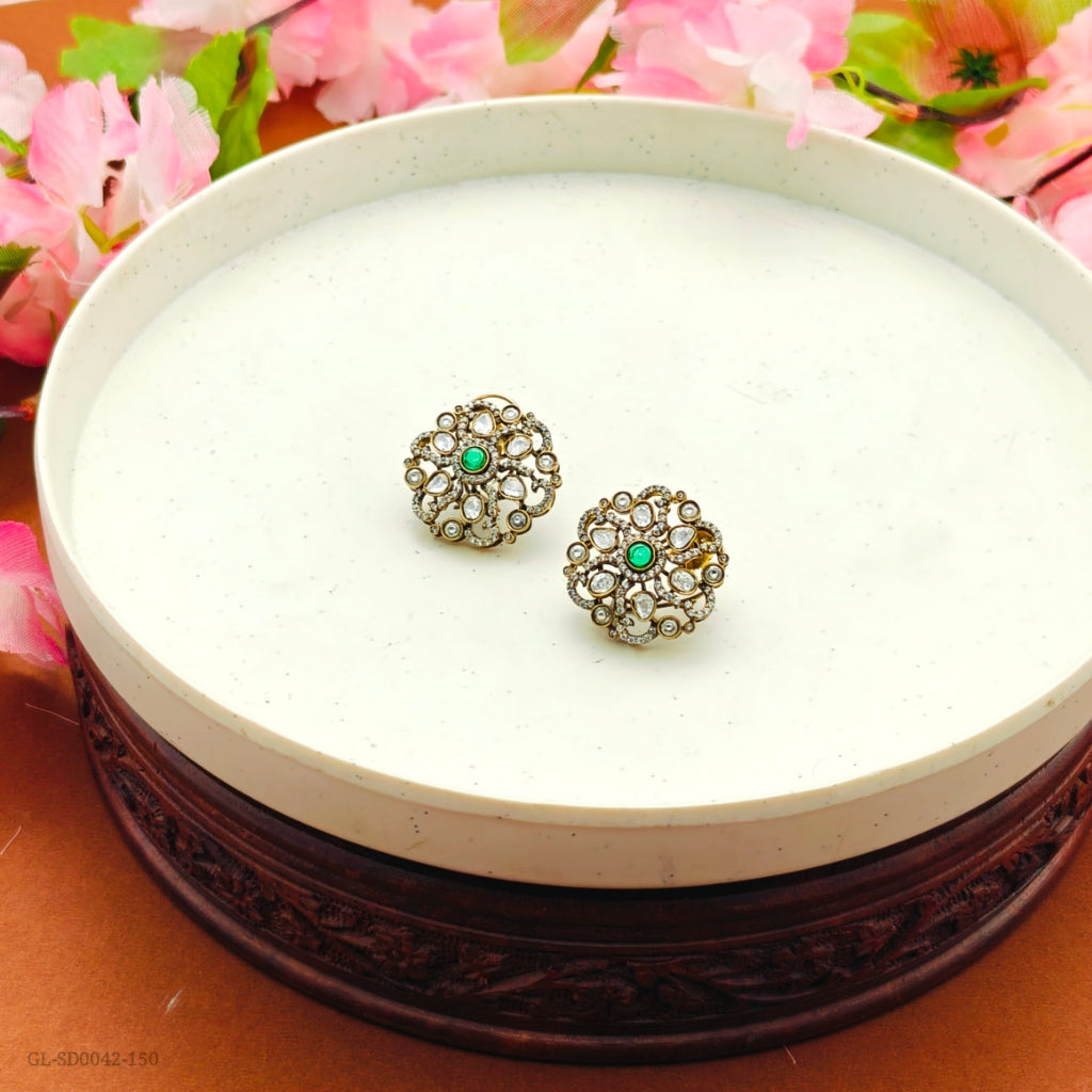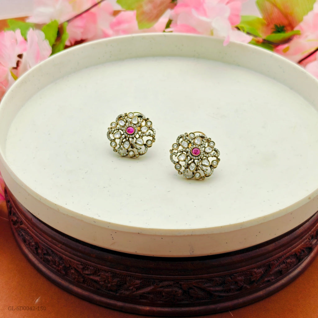 - These Cz Victorian studs feature a geometric pattern and are equipped with a screw back and lock for additional support. The stones are grand in size and add an elegant touch to any outfit.