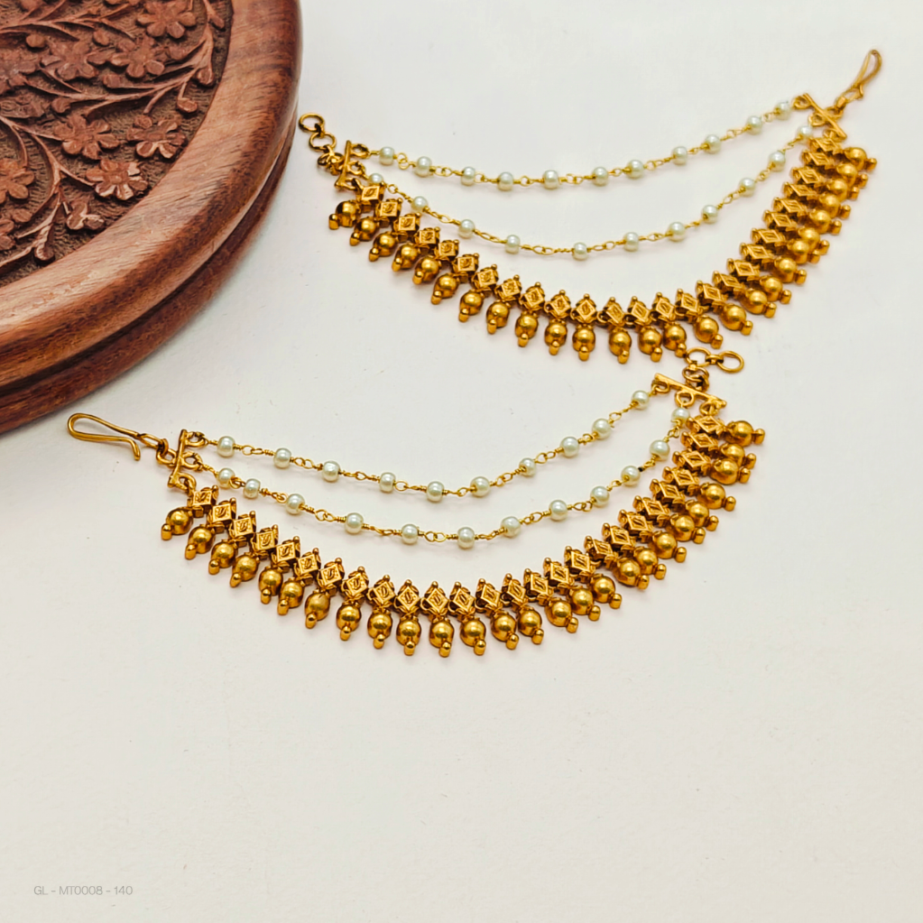 - These sophisticated ear chains, featuring a Golden pearl drops, are crafted to enhance and complement the elegance of any earrings.