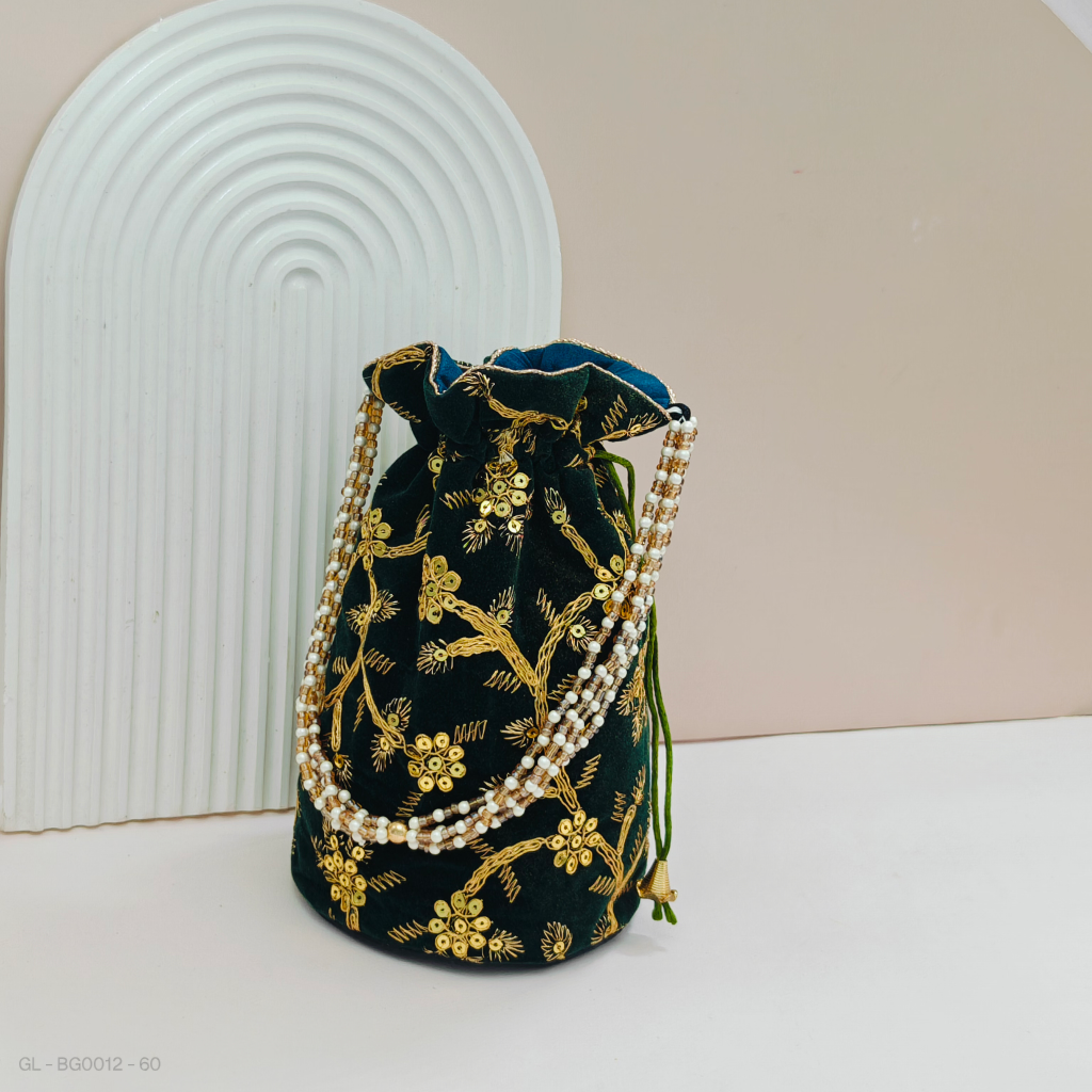 ✅ Velvet cloth with designer patterns with pearl chain handle for easy carry.