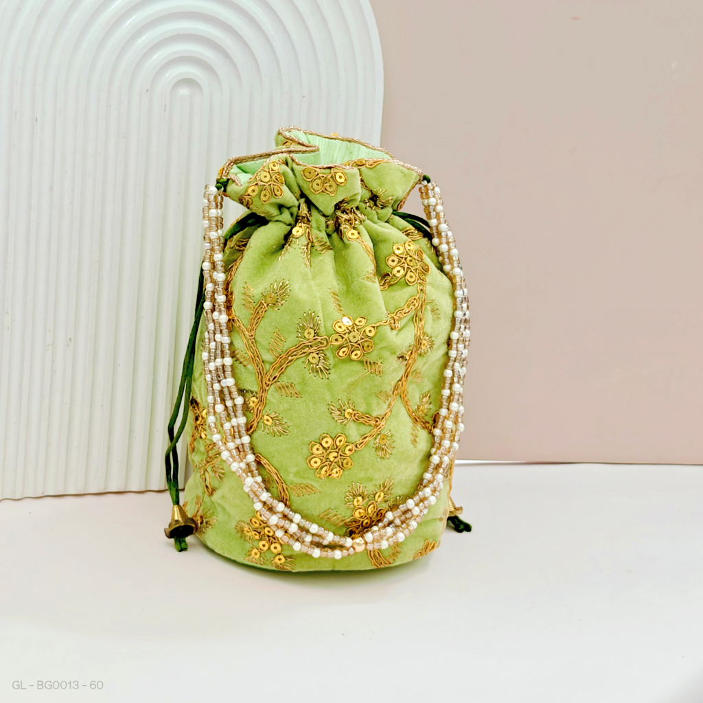 ✅ Velvet cloth with designer patterns with pearl chain handle for easy carry.