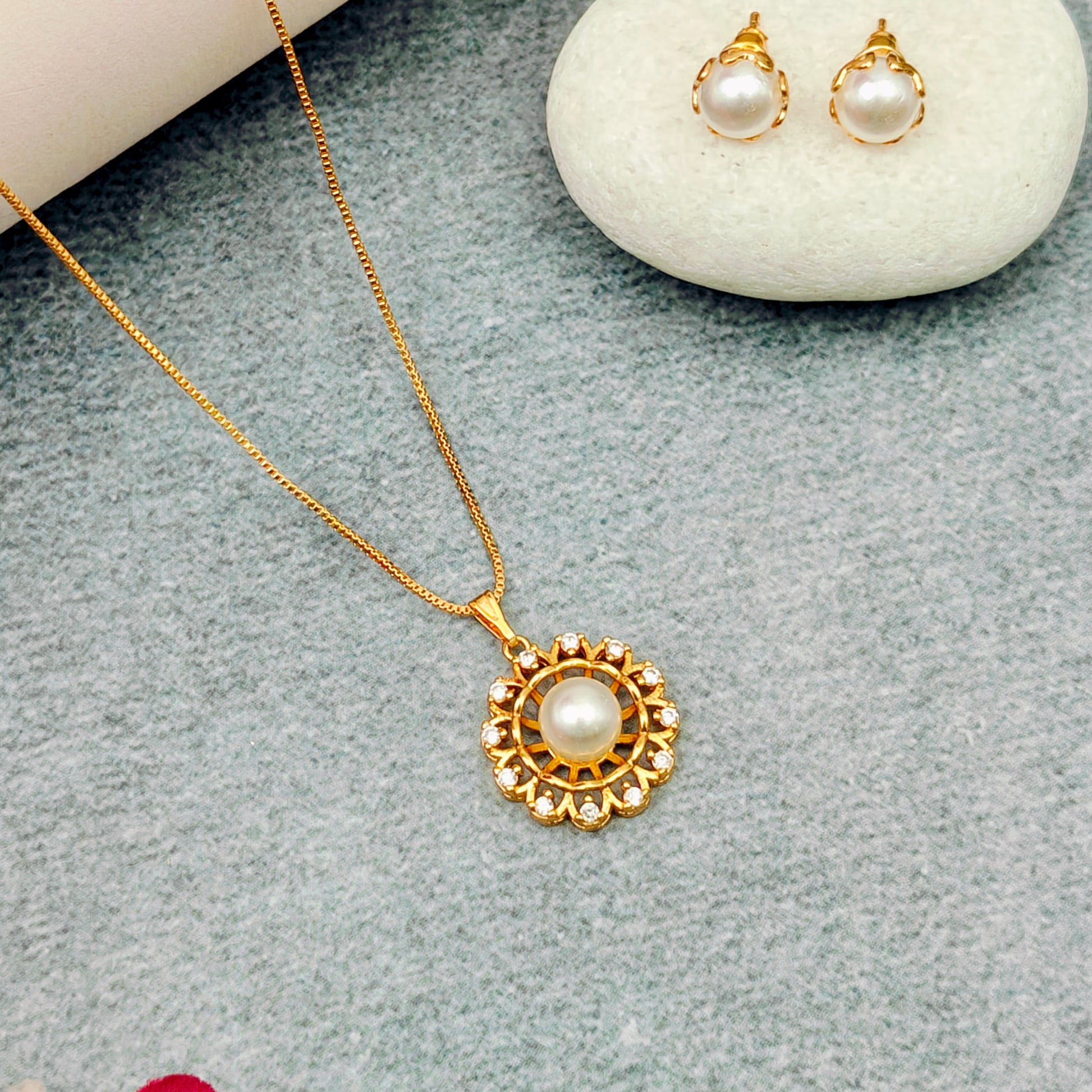 Elegant Pearl Pendant Daily wear Necklace Set