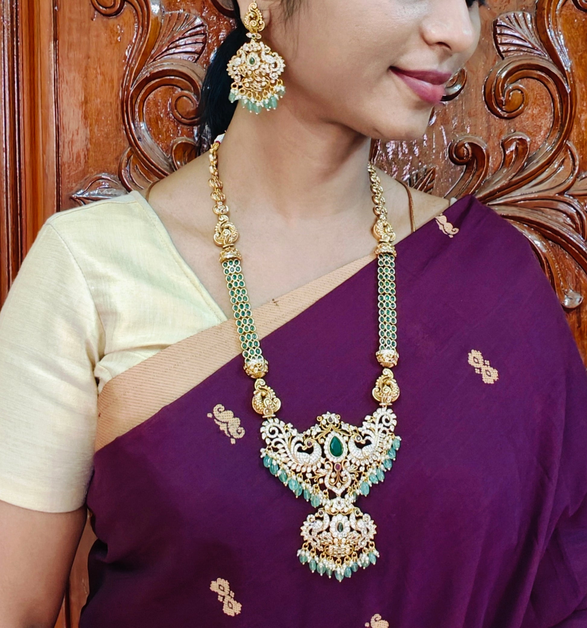 Emerald Cz Golden Raani Haaram