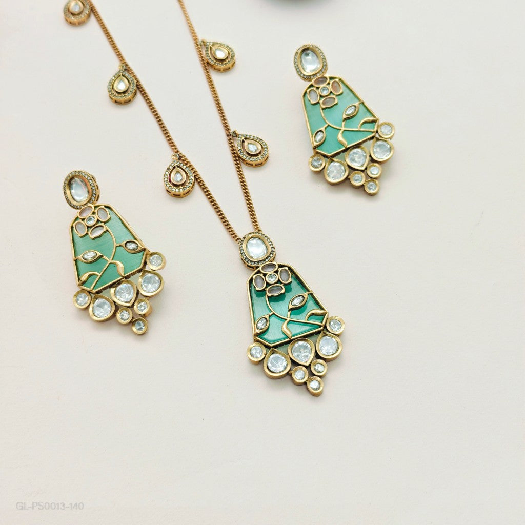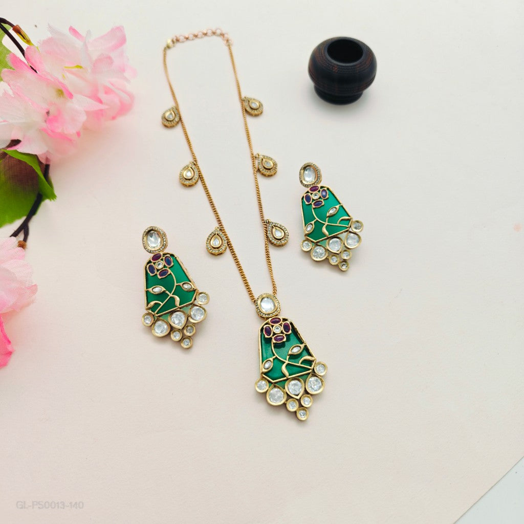 - This locket set features a variety of colorful and Mossanaite stone pendant, set in a geometric pattern in 4 different colors.