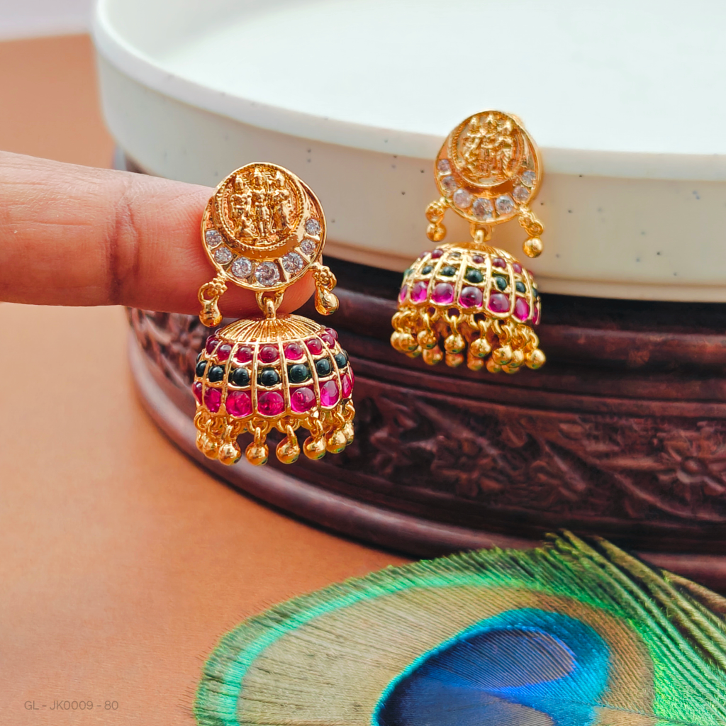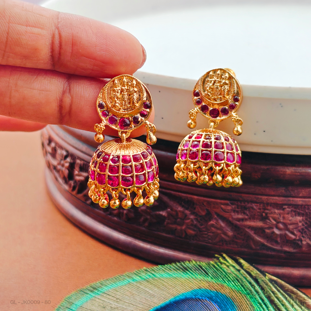 - Micro gold plated Ruby stone Lakshmi jhumkas