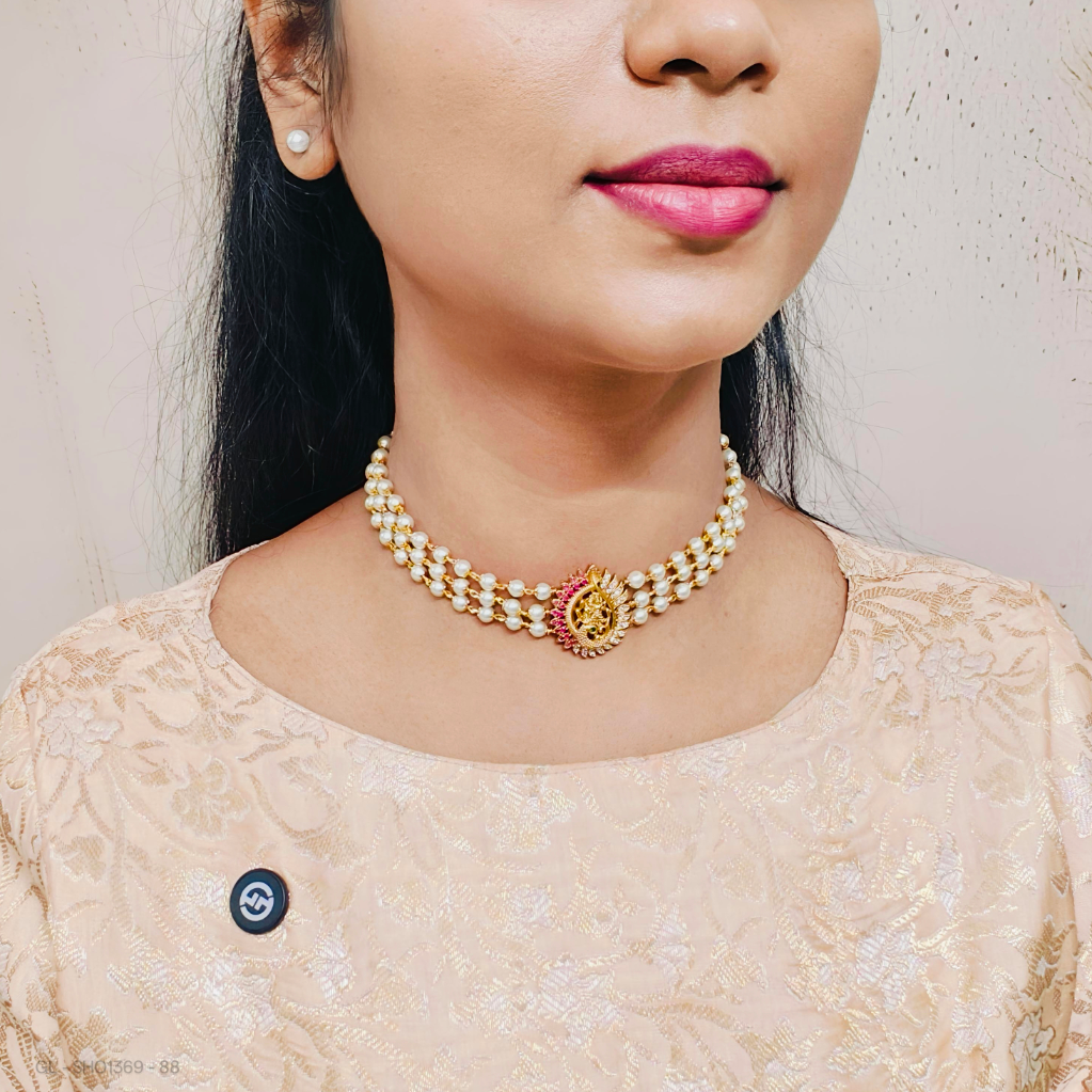 Minimal Pearl Peacock Centered Radha Krishna Necklace