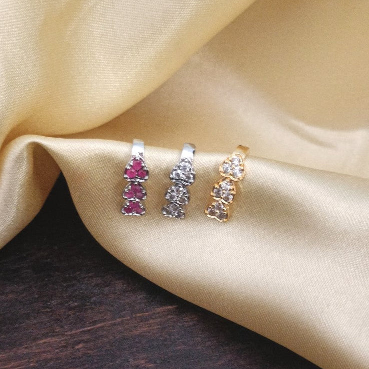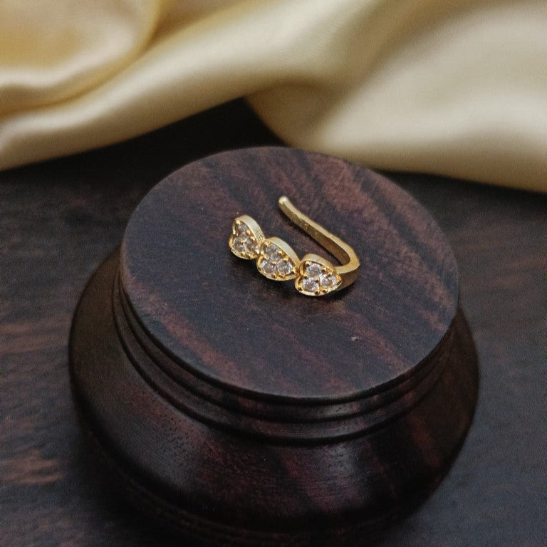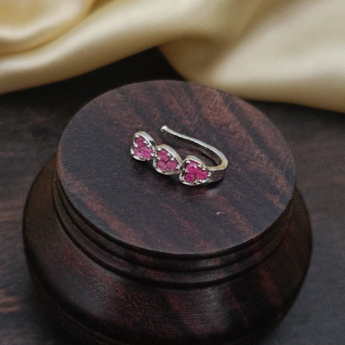 This Non pierced Nose Ring/Nath/Mookuthi features a dazzling combination of gold finish, ruby and white stones that add a touch of elegance and sophistication to any traditional look.