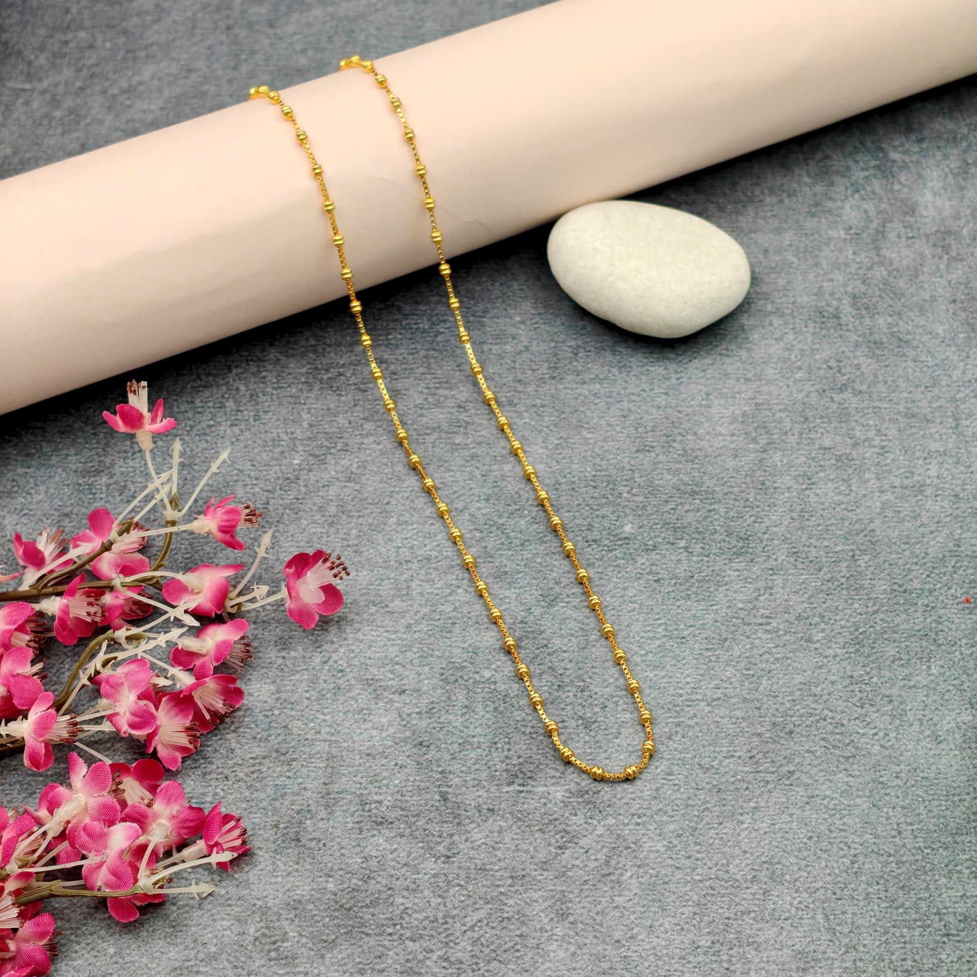 - The image displays a gold-plated, bead-style chain necklace. This type of jewelry is designed for daily wear and offers the luster of gold without the high cost of solid gold.
