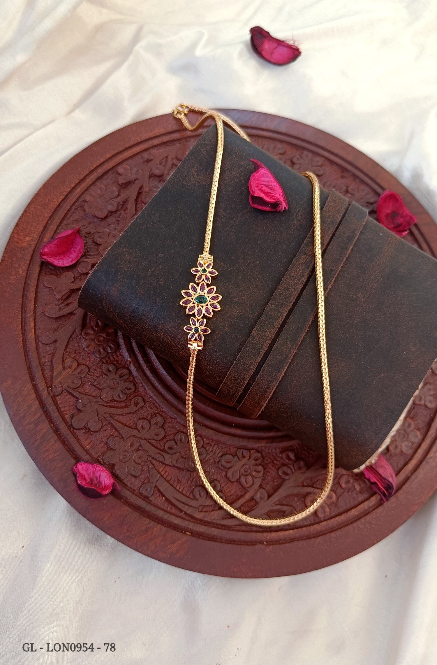 Gold Plated Red&Green stones Mogappu Chain