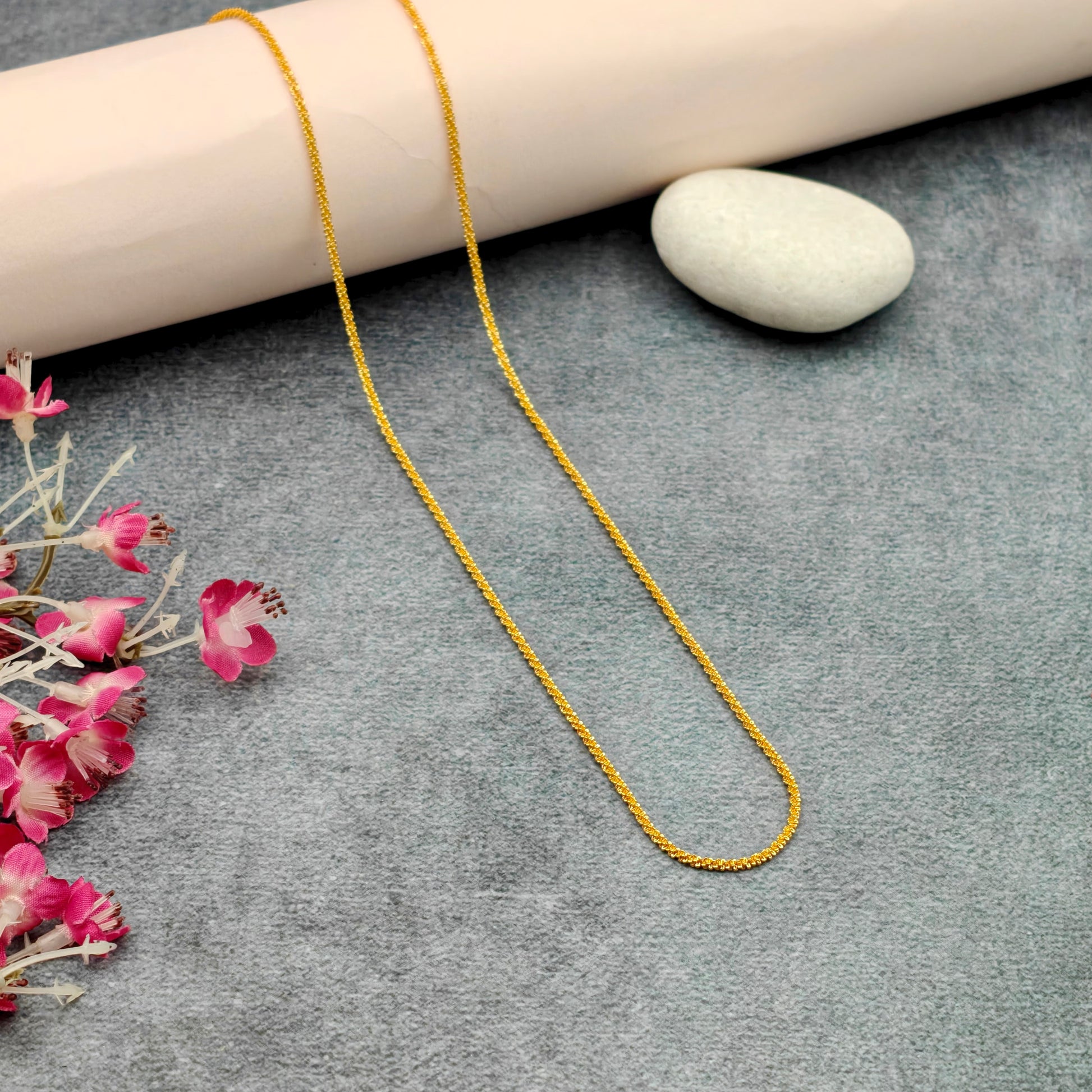 This is a delicate, long twisted rope chain designed to be strong and durable. Its simple yet elegant style makes it perfect for both everyday use and formal occasions.
