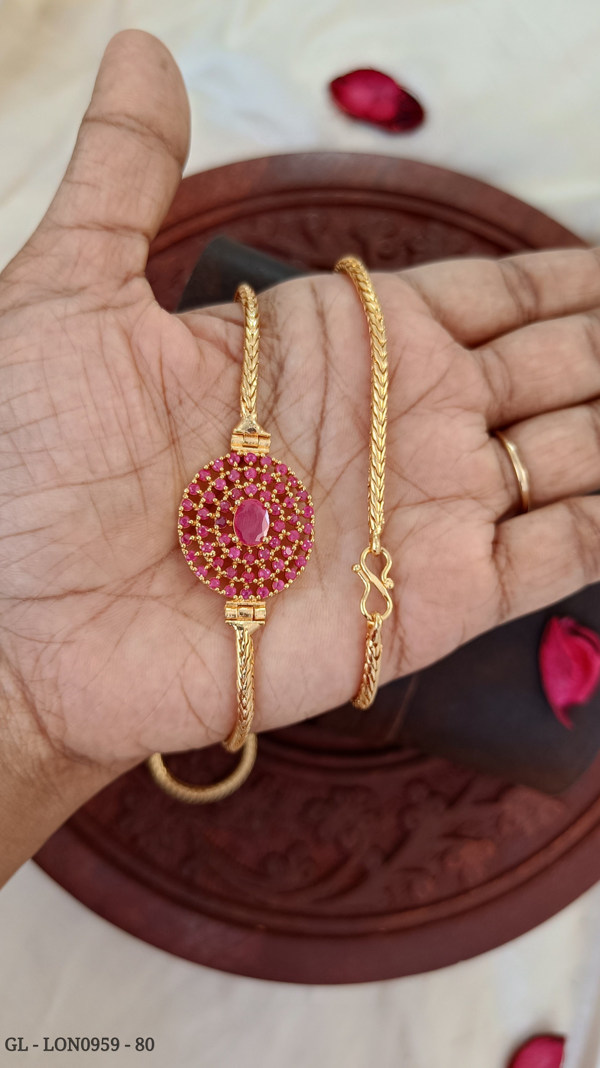 - Micro Gold Plated AD Stones Circular Flower Pendant Mogappu Chain