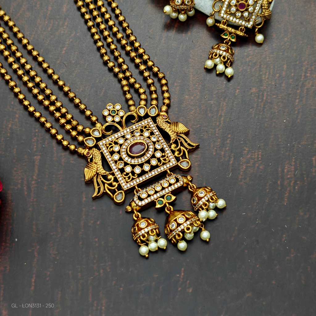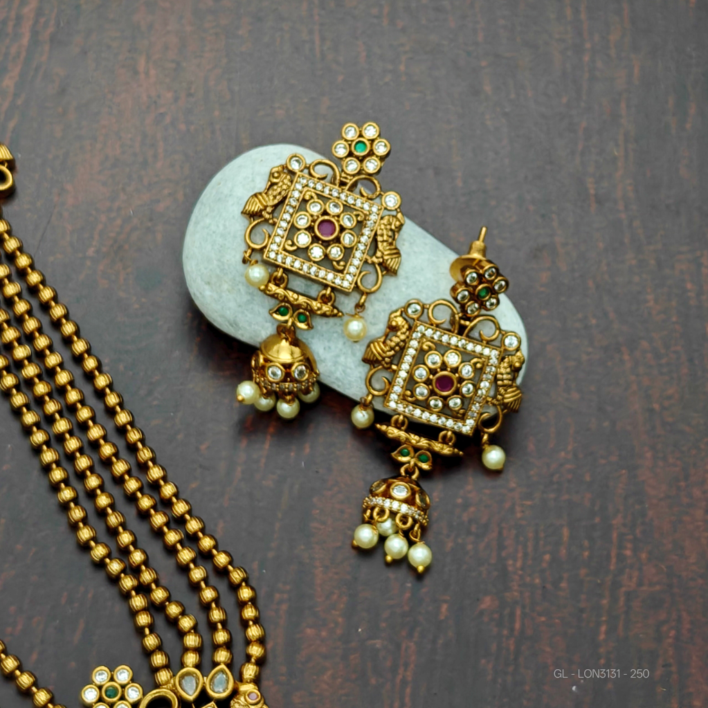 - This necklace set features a matt gold finish in 3 layer golden beads style