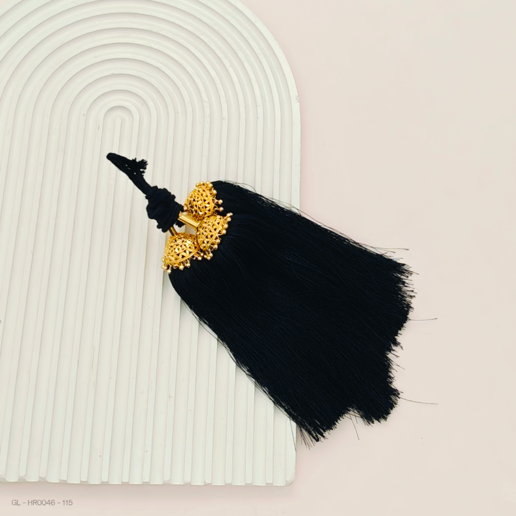 - This exquisite Hair Kunjalam (hair accessory) features a traditional antique temple-style design with a stunning gold finish.