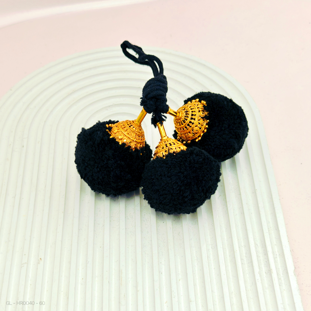 - This exquisite Hair Kunjalam(hair accessory) features a traditional antique temple-style design with a stunning gold finish and intricate Kemp Stones.