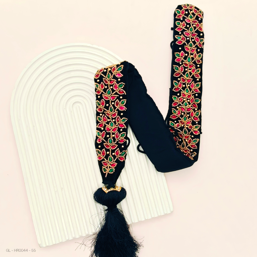 - This exquisite Jada Billa (hair accessory) features a traditional antique temple-style design with a stunning gold finish and intricate colourful Kemp Stones.