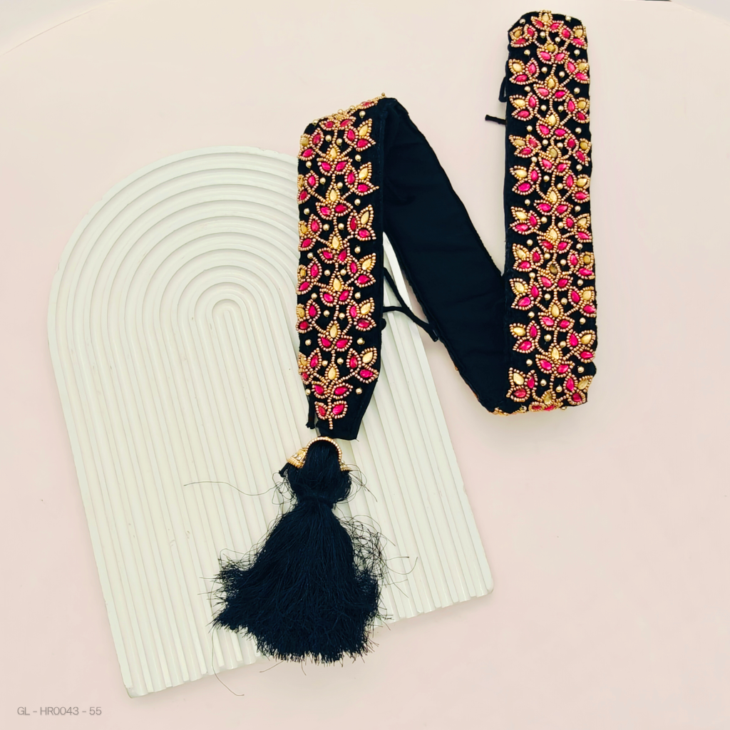 - This exquisite Jada Billa (hair accessory) features a traditional antique temple-style design with a stunning gold finish and intricate colourful Kemp Stones.
