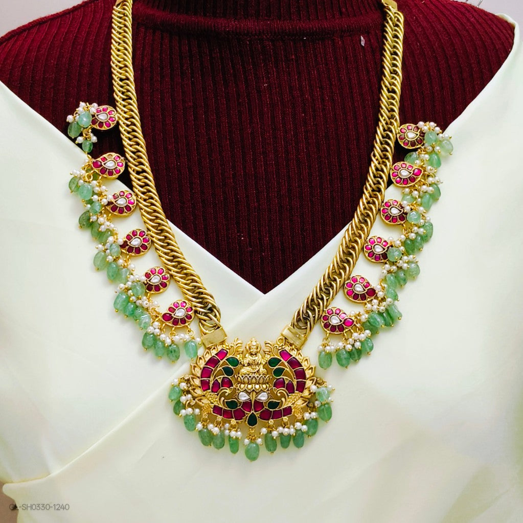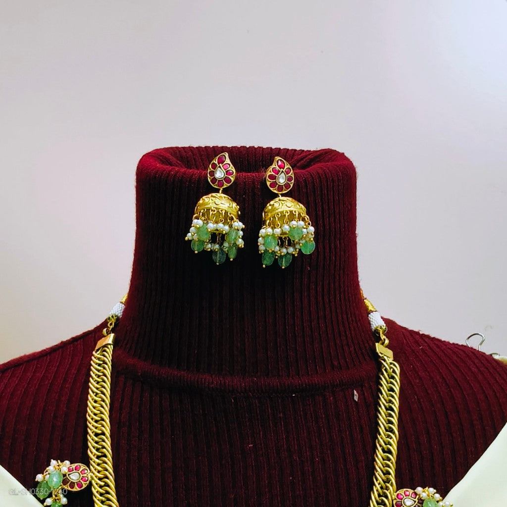 - Elevate your collection with this Jadau Kundan designer necklace set, featuring authentic stones intricately crafted for timeless elegance.