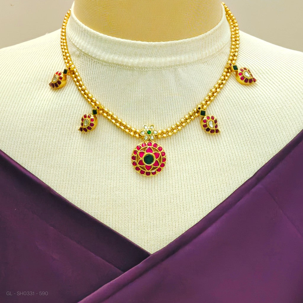 - Elevate your collection with this Jadau Kundan designer necklace set, featuring authentic stones intricately crafted for timeless elegance.