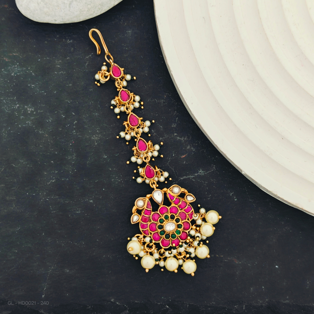 - This exquisite Jadau Kundan tikka, boasts a stunning peacock design that expertly captures the essence of traditional Indian craftsmanship.