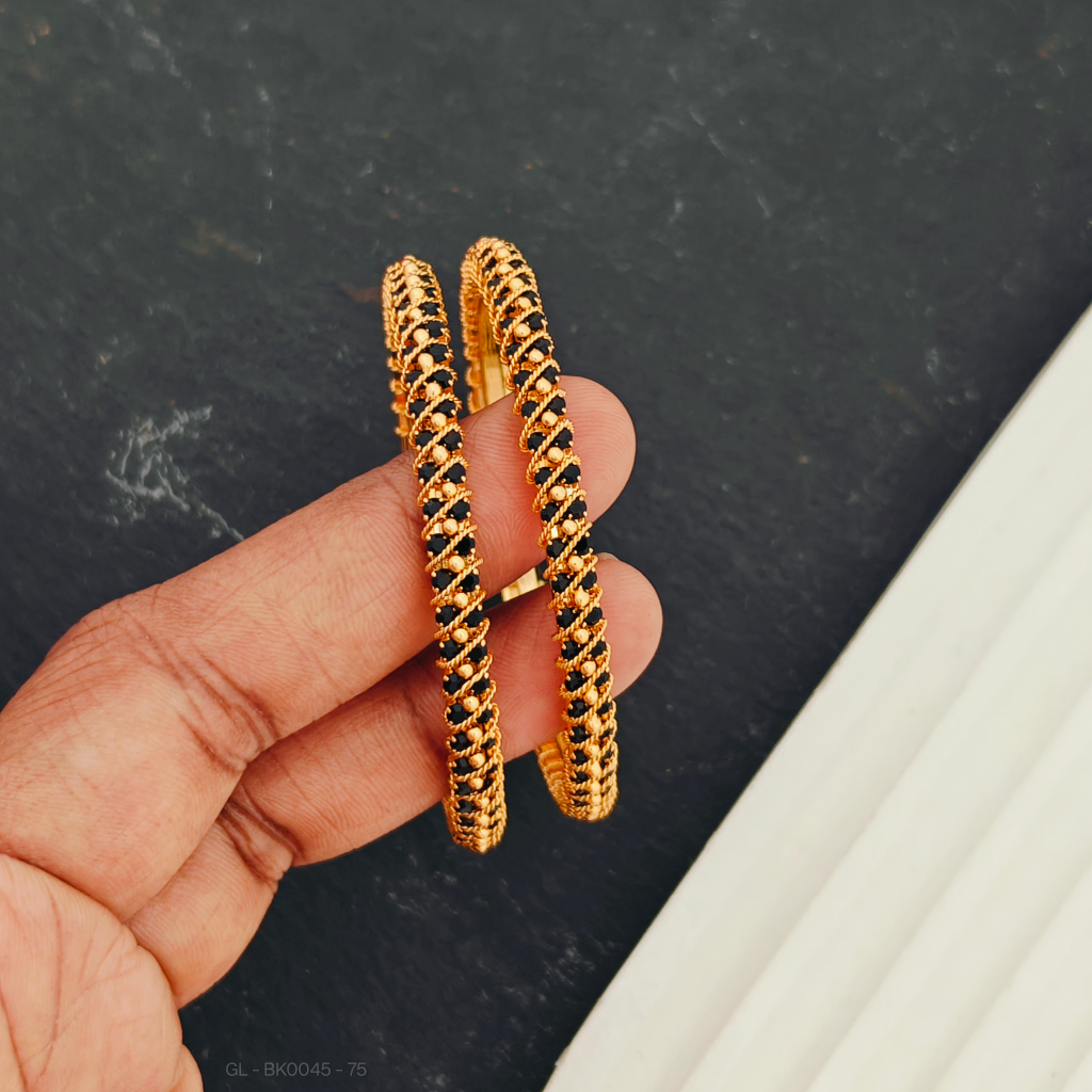 - This 2-piece set of Kids Bangles features a beautiful gold finish and elegant black stone studded design.