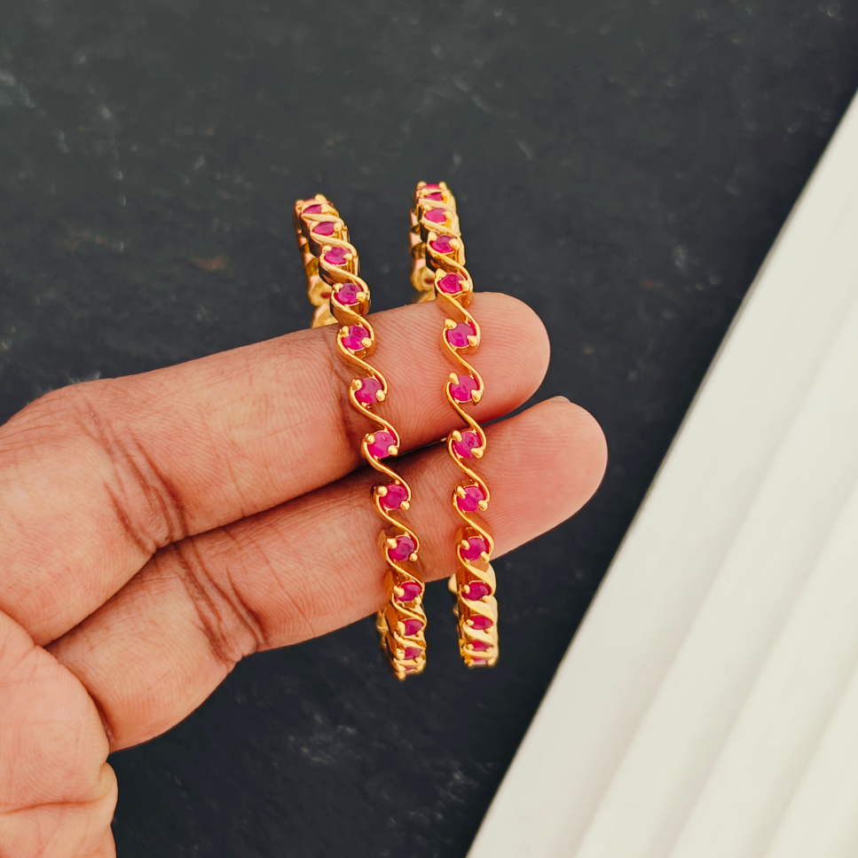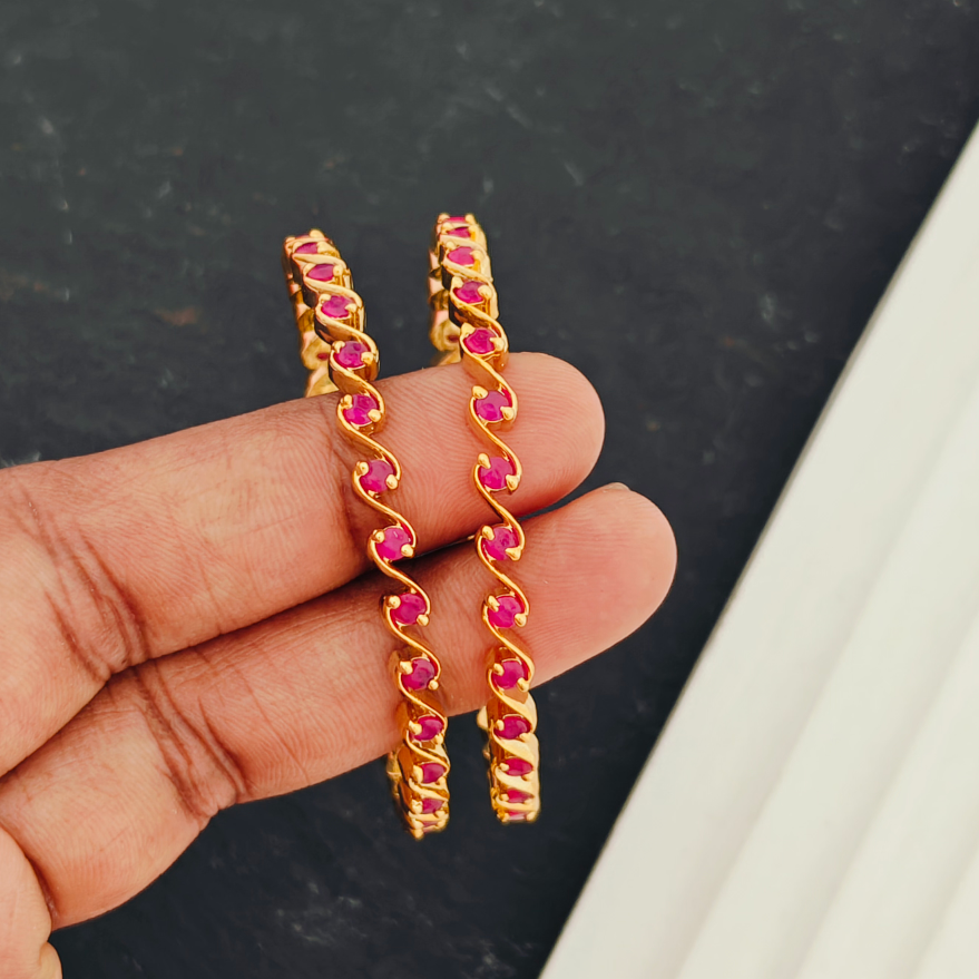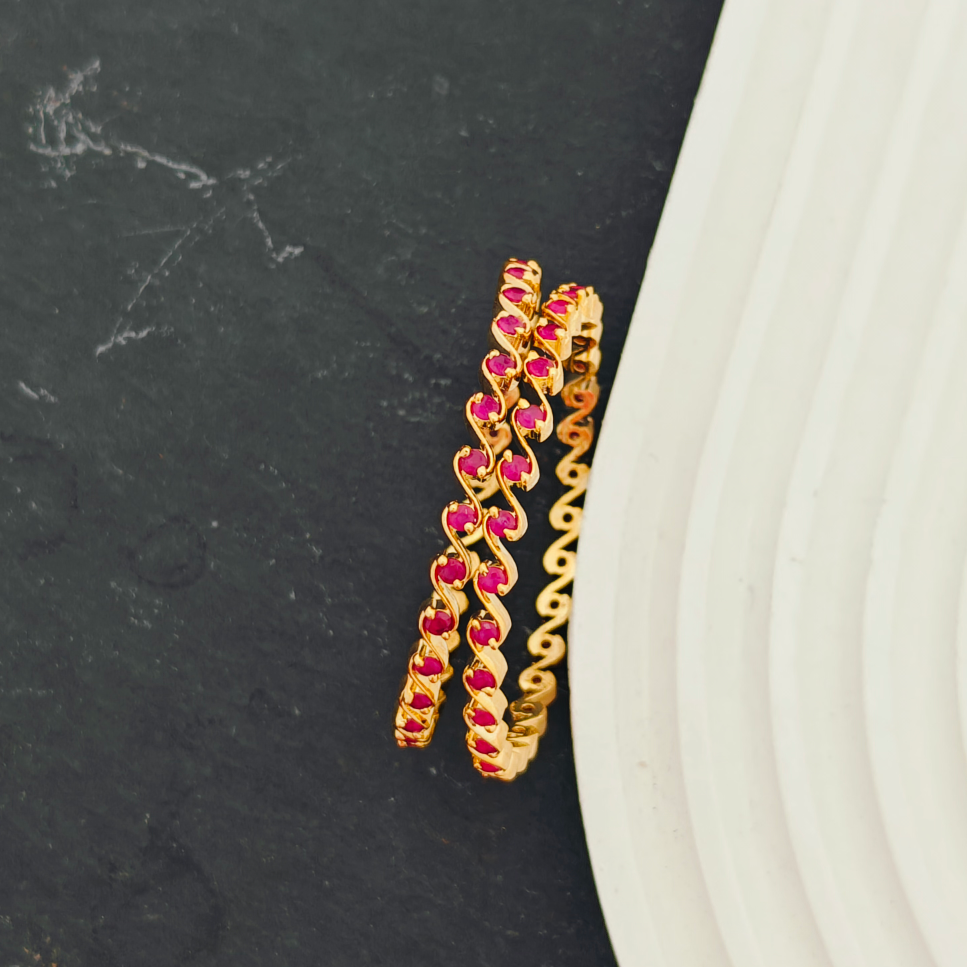 - These designer bangles are adorned with Ruby Emerald stones and are finished in gold. These bangles come in a convenient 4-piece set, perfect for children aged 3 months to 5 years.